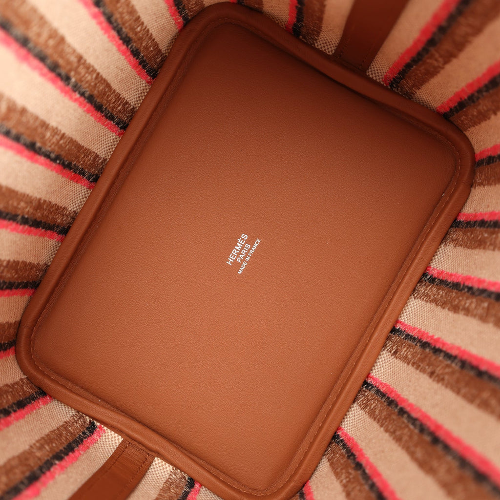 Hermes Stripe Picotin Lock 18 Gold Swift and Ecru-Beige, Rose Pop, Black and Fauve Toile H Canvas Palladium Hardware