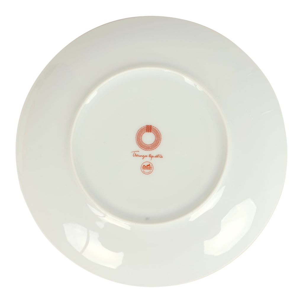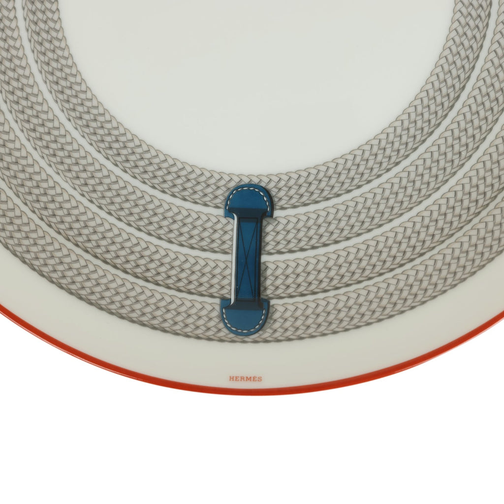 Hermes "Tressages Equestres" Orange, White and Blue Porcelain Dessert Plate Set of 2