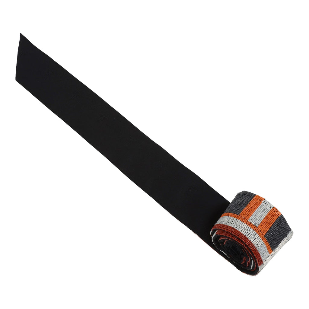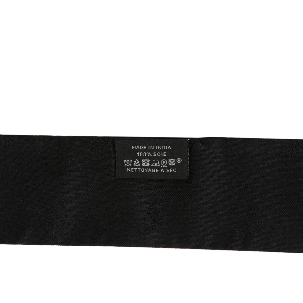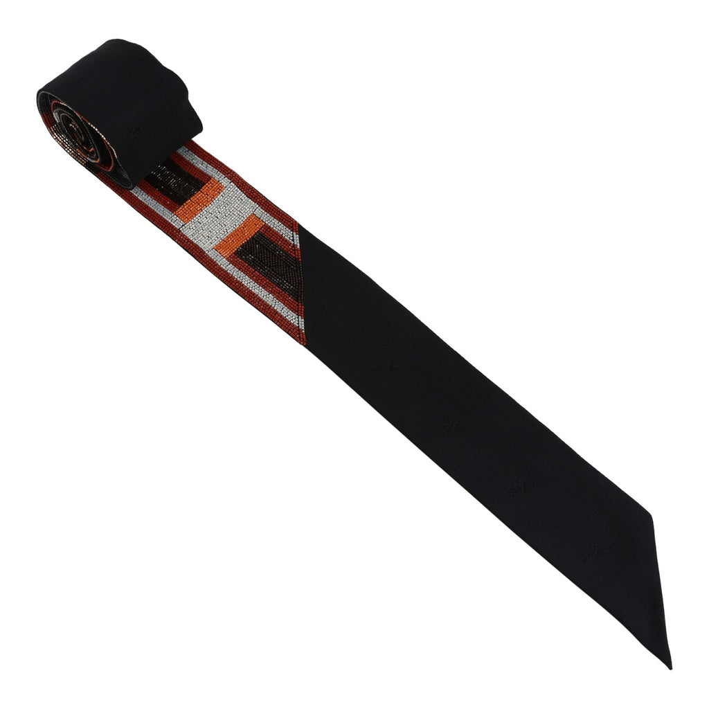 Hermes "Tresses H" Embroidered Black, Rouge H and Argent Silk Twilly