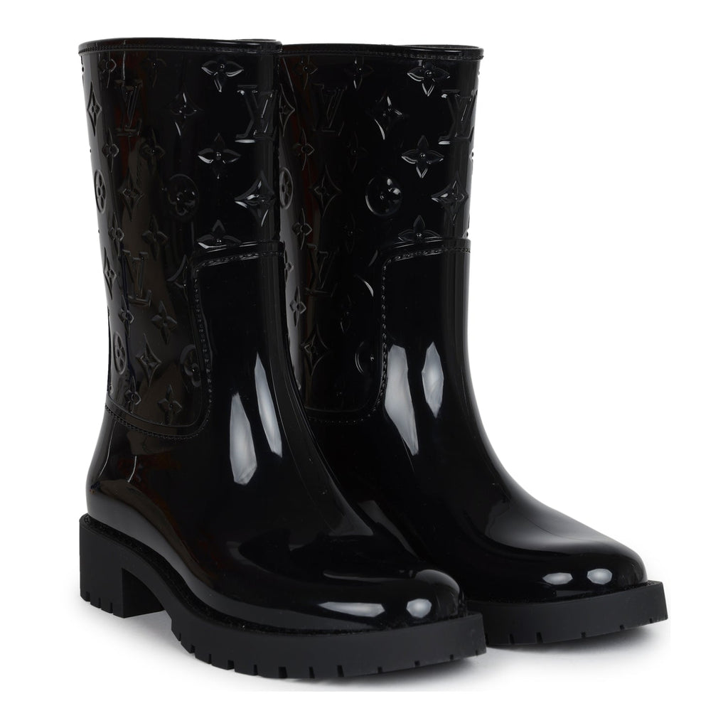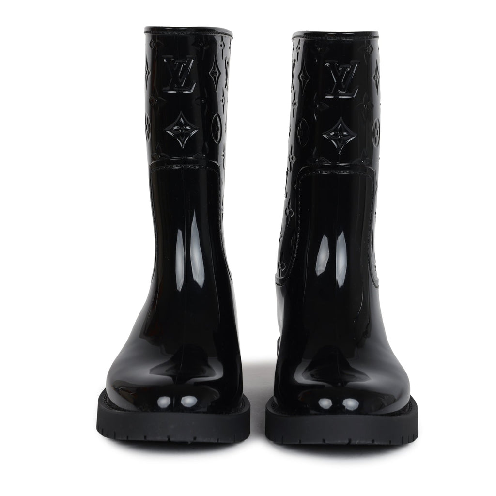 Louis Vuitton Drops Flat Half Boots Black Monogram Rubber 37 EU