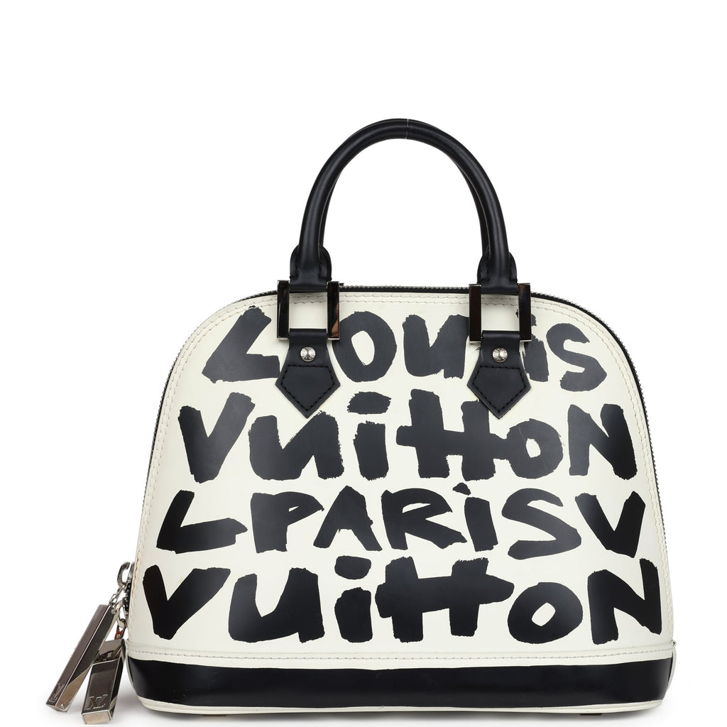Vintage Louis Vuitton x Stephen Sprouse Graffiti Alma MM Black and White Leather Silver Hardware