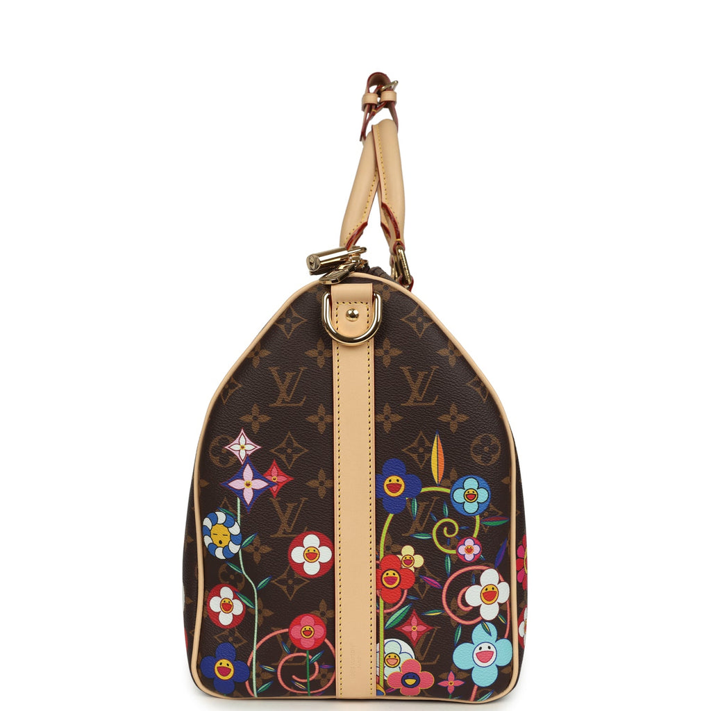 Louis Vuitton X Takashi Murakami "Garden" Keepall Bandouliere 45 Brown Multicolor Monogram Flowers Gold Hardware