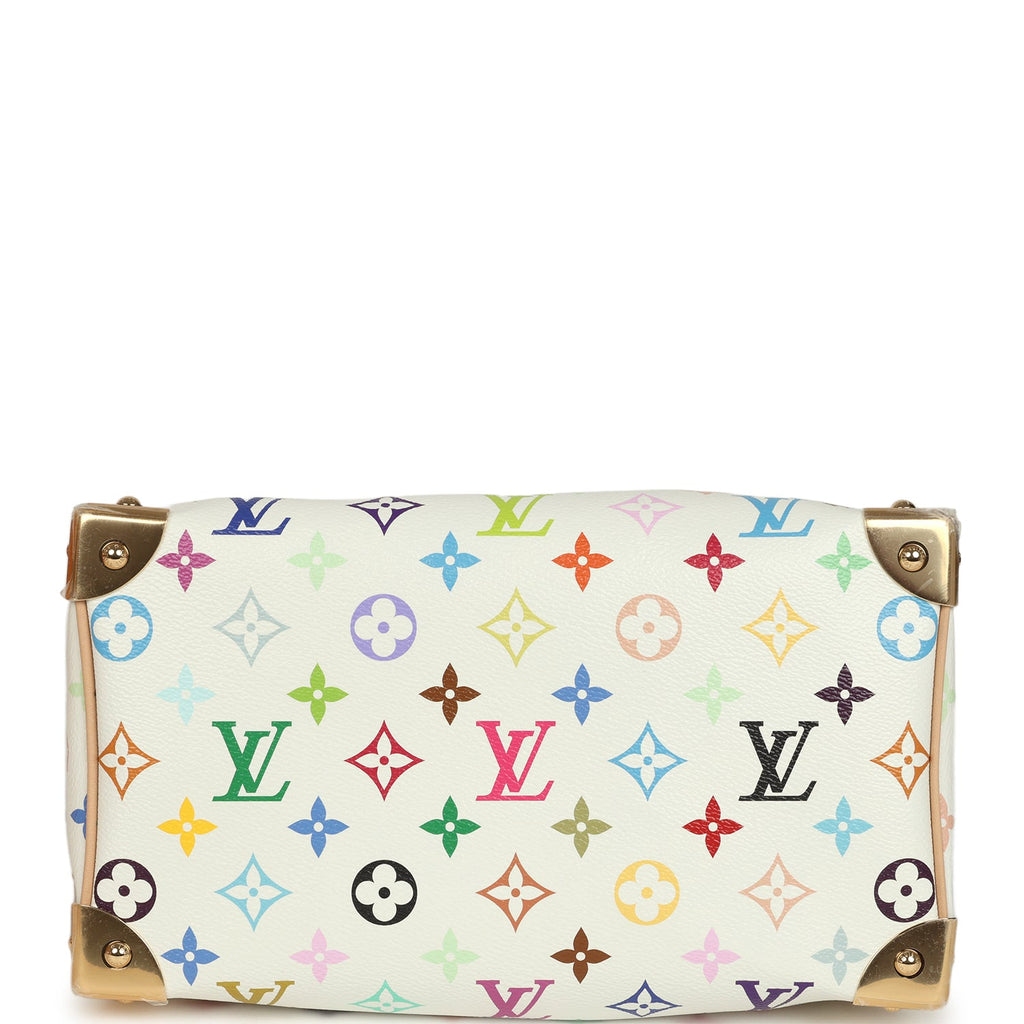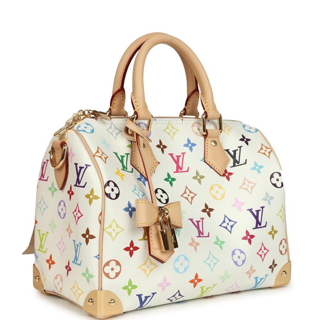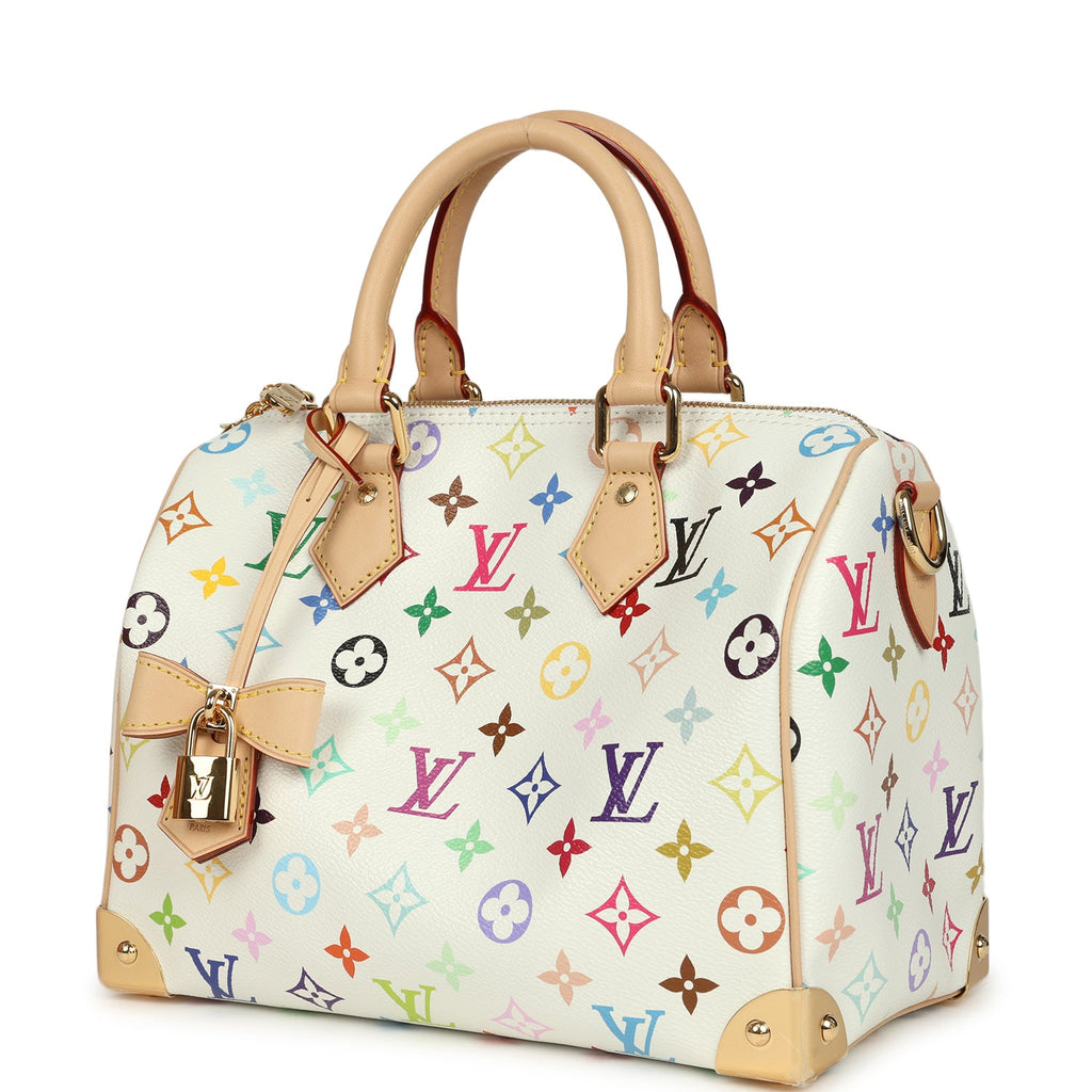 Louis Vuitton X Takashi Murakami Speedy 25 Bandouliere White Multicolored Monogram Gold Hardware