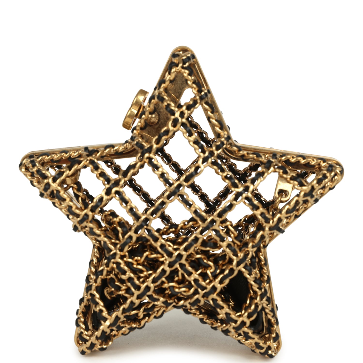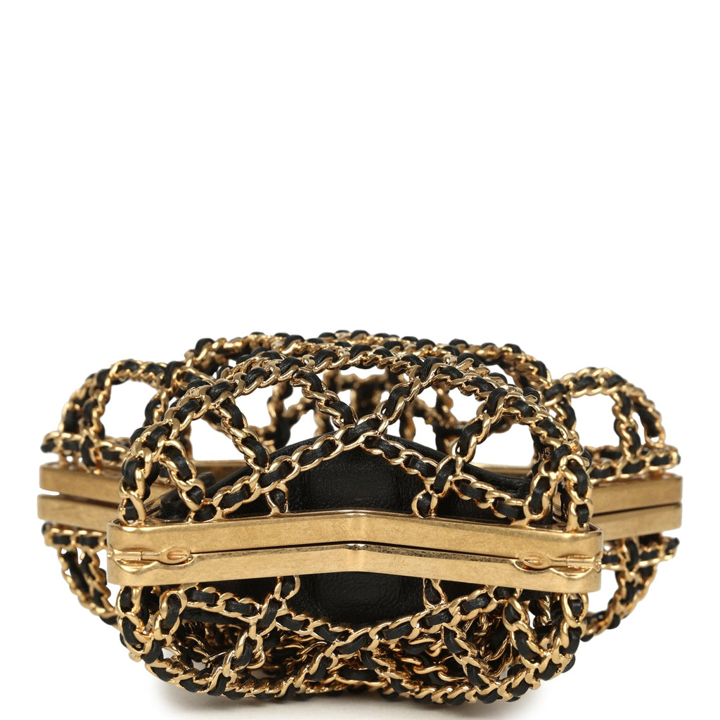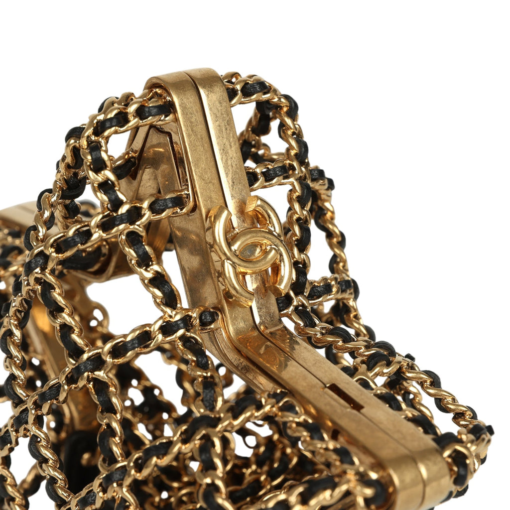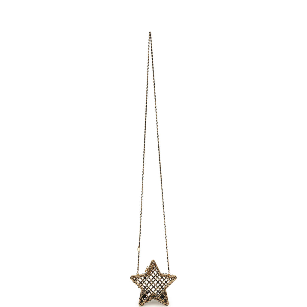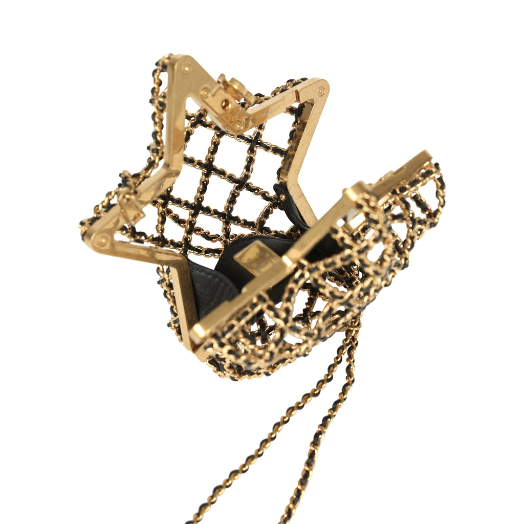Pre-owned Chanel CC Star Minaudiere Clutch with Chain Black Leather Gold Hardware