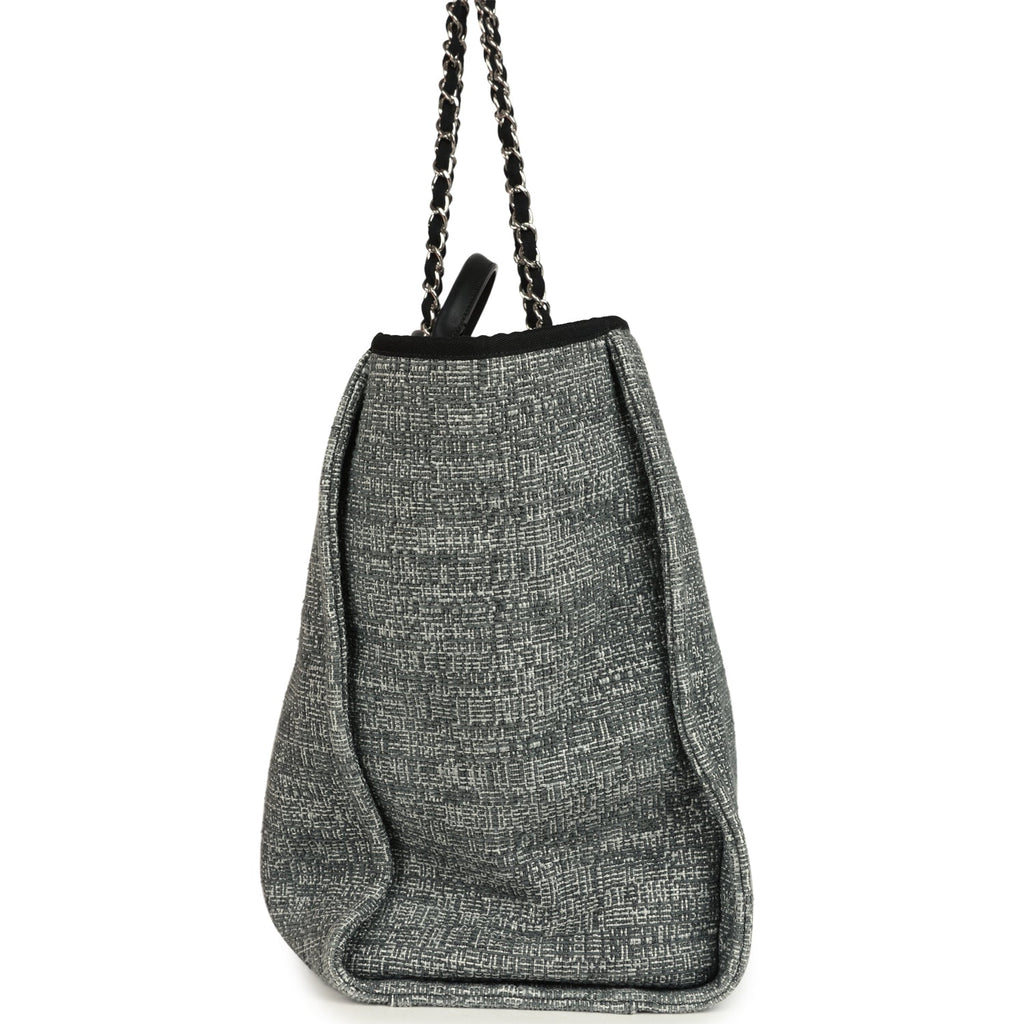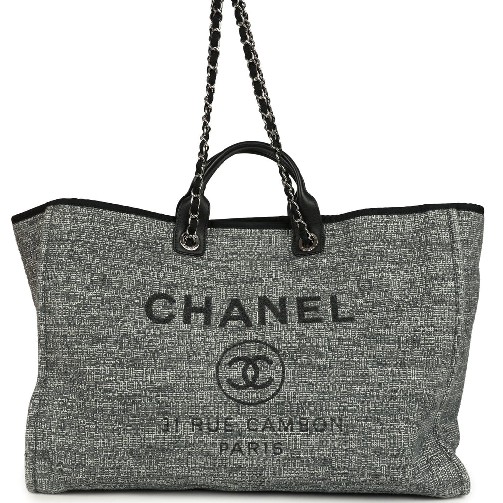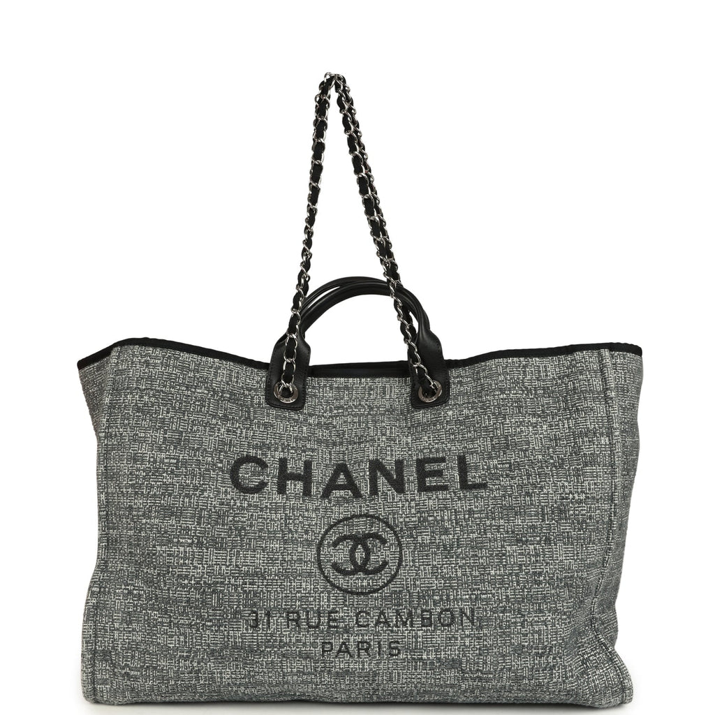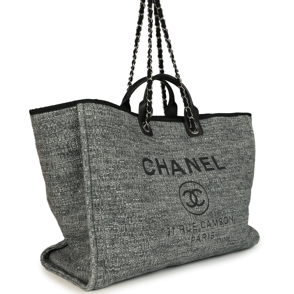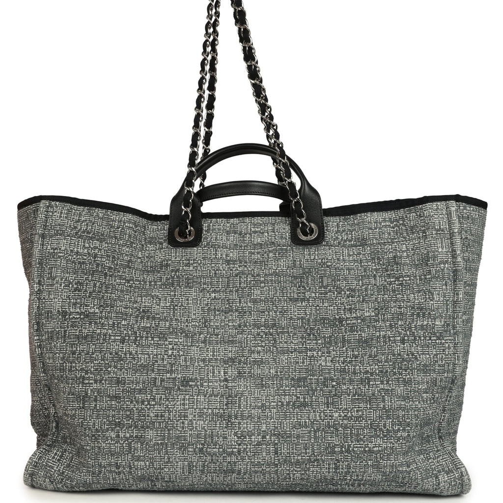 Pre-owned Chanel Extra Large Deauville Shopping Tote Grey and White Tweed Silver Hardware