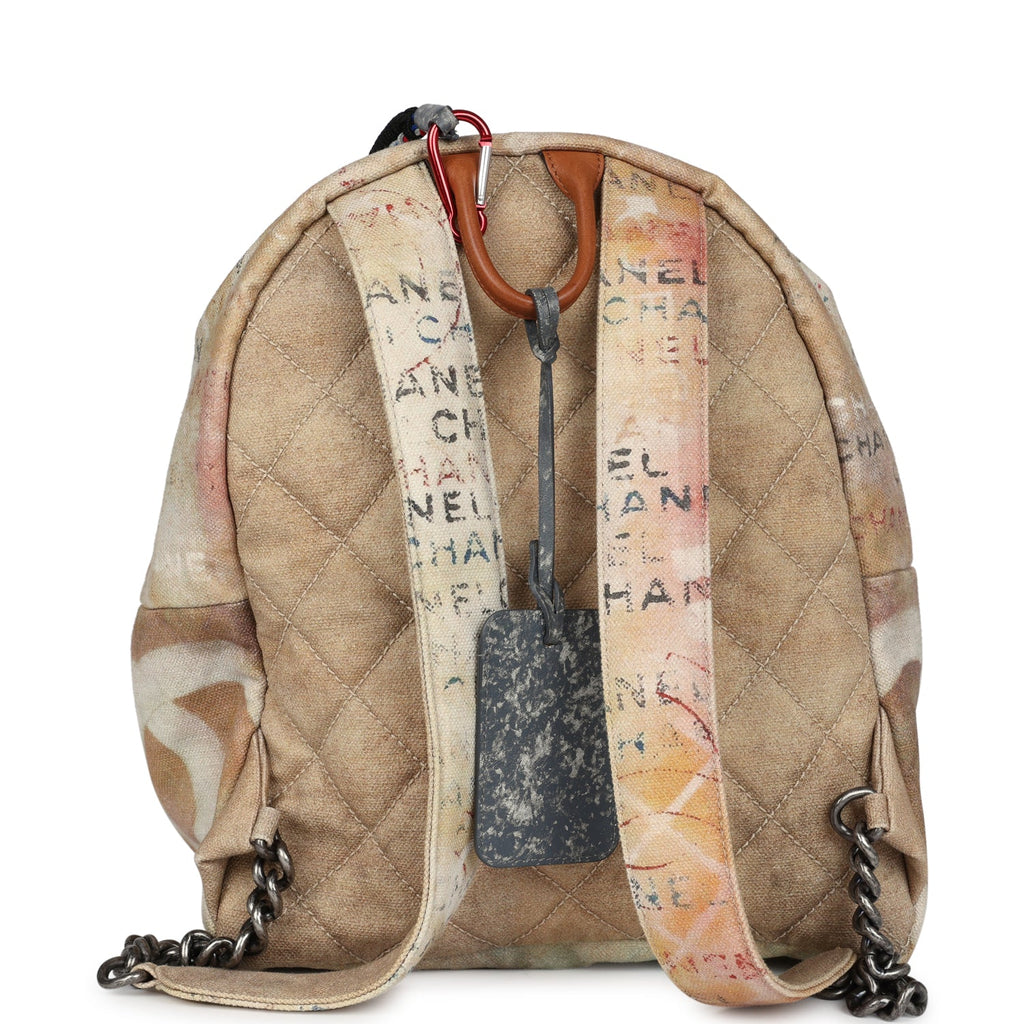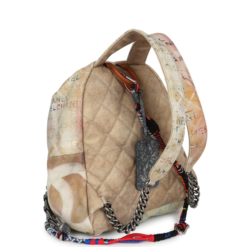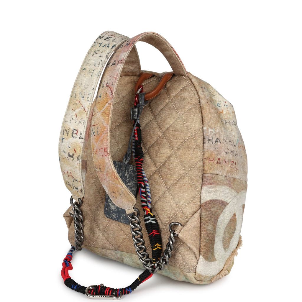 Pre-owned Chanel Graffiti Backpack Beige Multicolored Canvas Silver Hardware