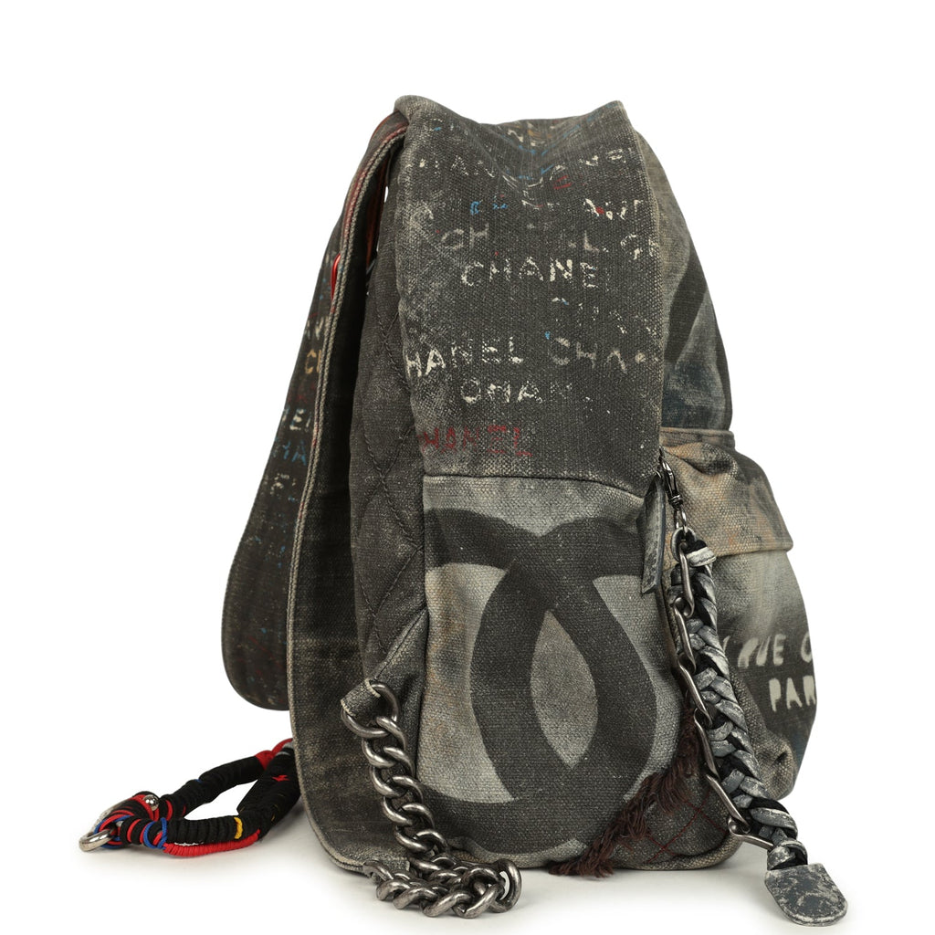 Pre-owned Chanel Graffiti Backpack Dark Grey Multicolored Canvas Mixed Metal Hardware