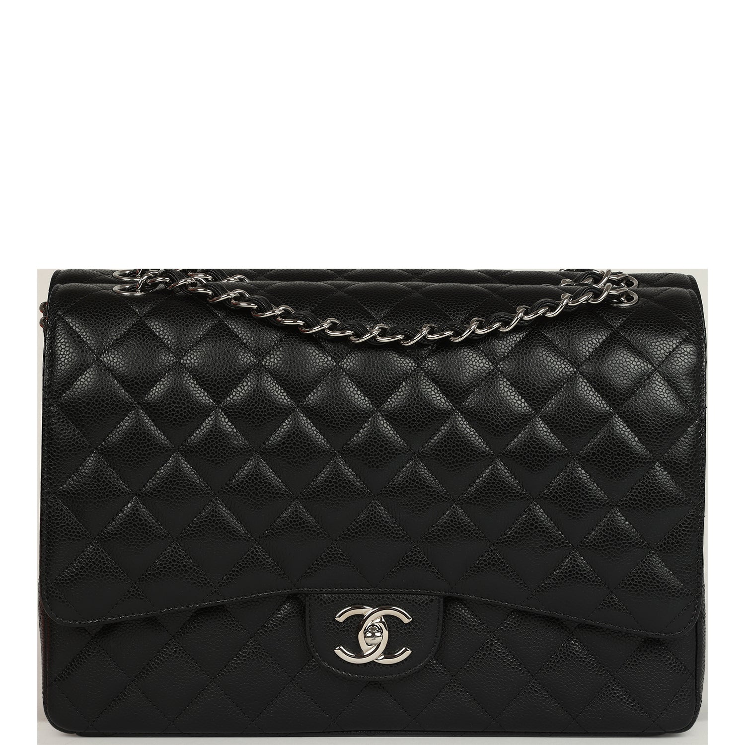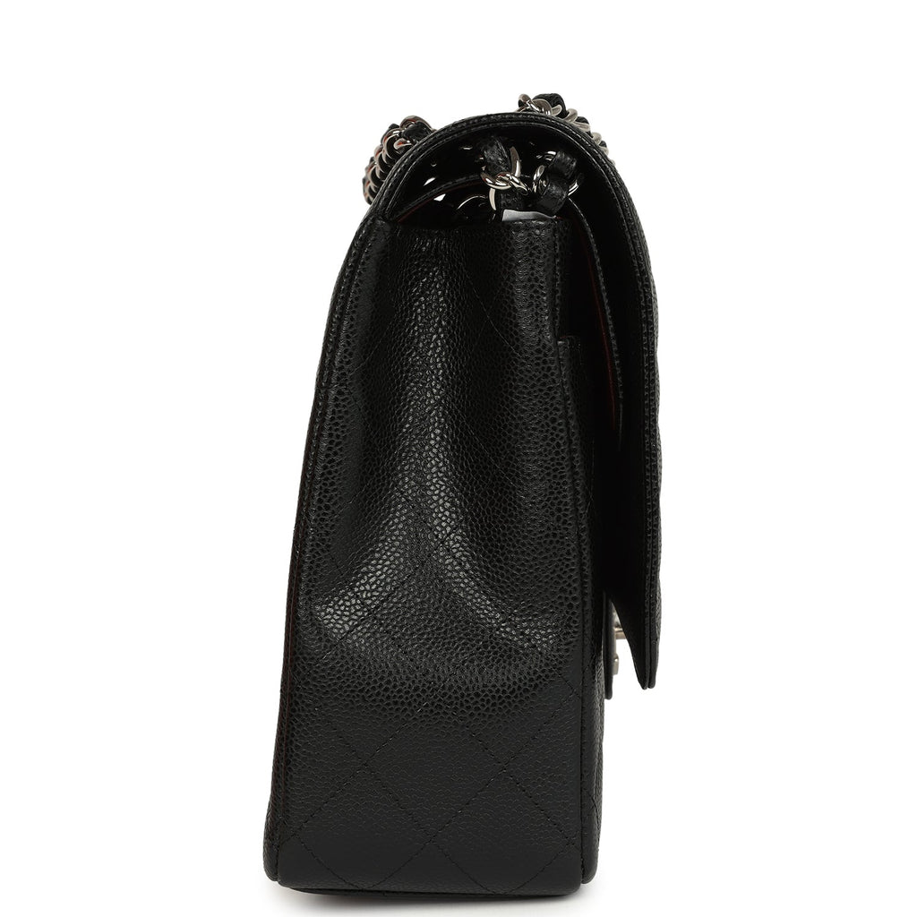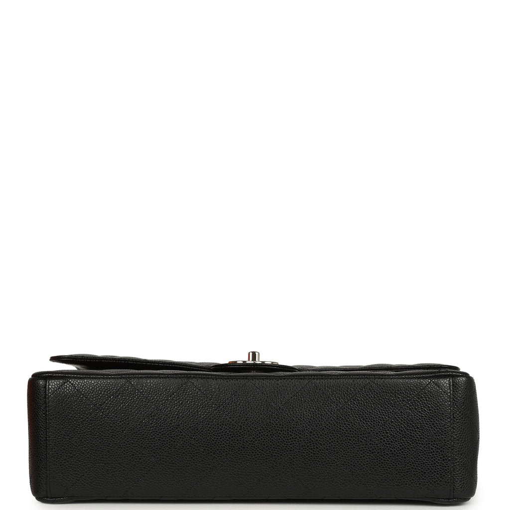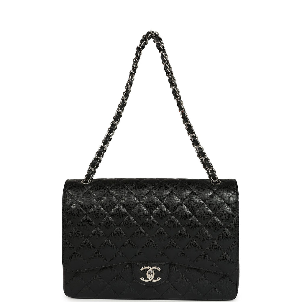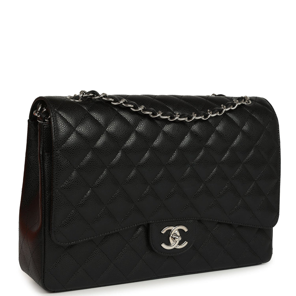 Pre-owned Chanel Maxi Classic Double Flap Bag Black Caviar Silver Hardware