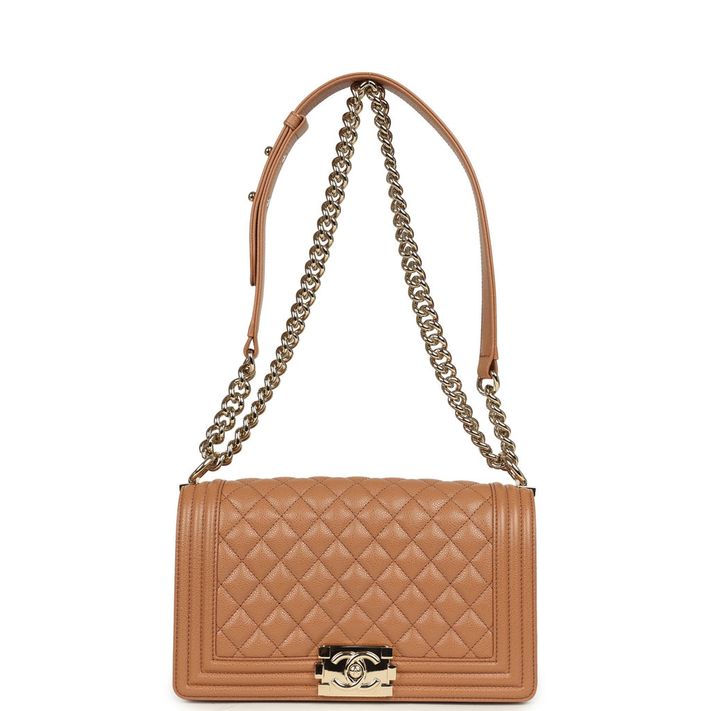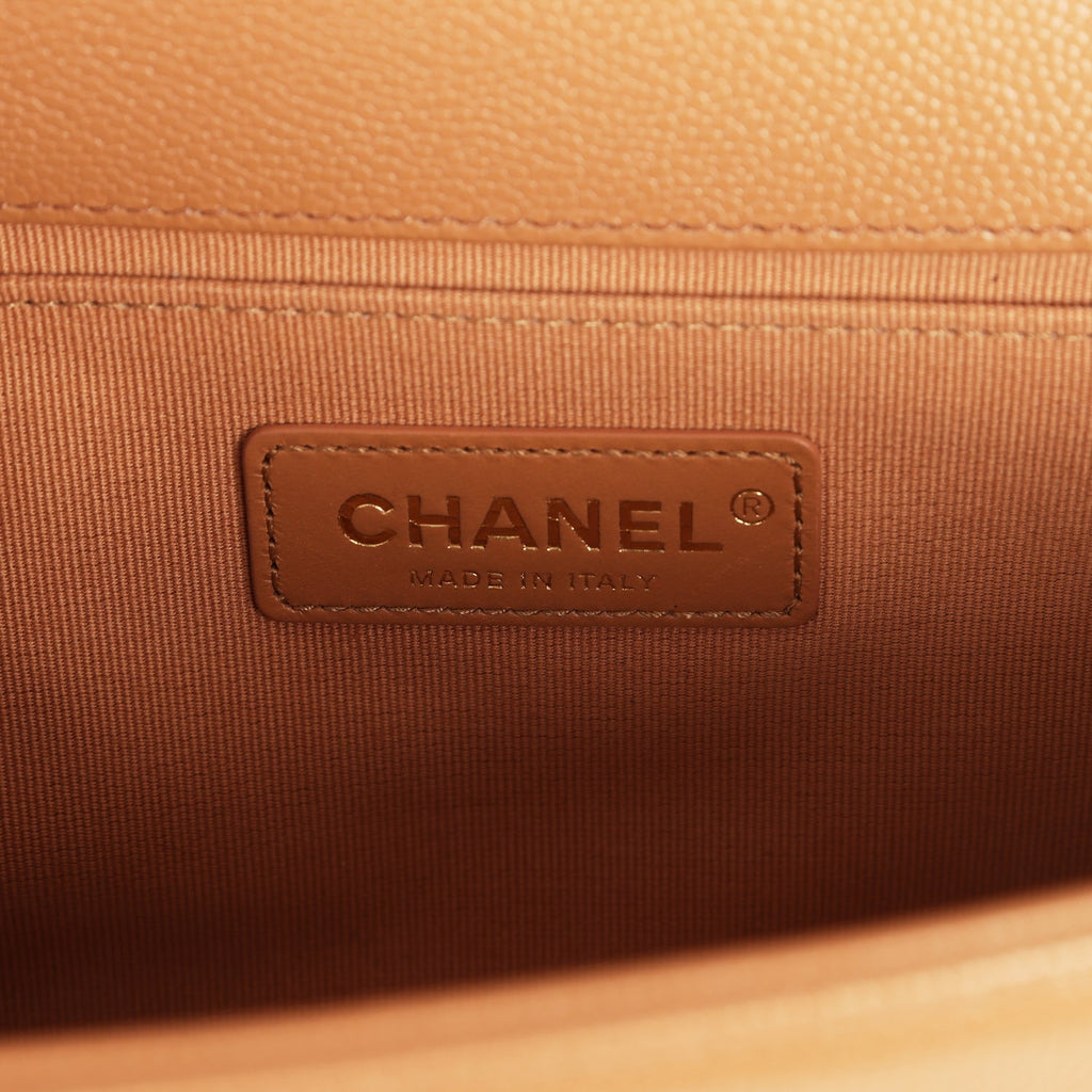 Pre-owned Chanel Medium Boy Bag Caramel Shiny Caviar Light Gold Hardware