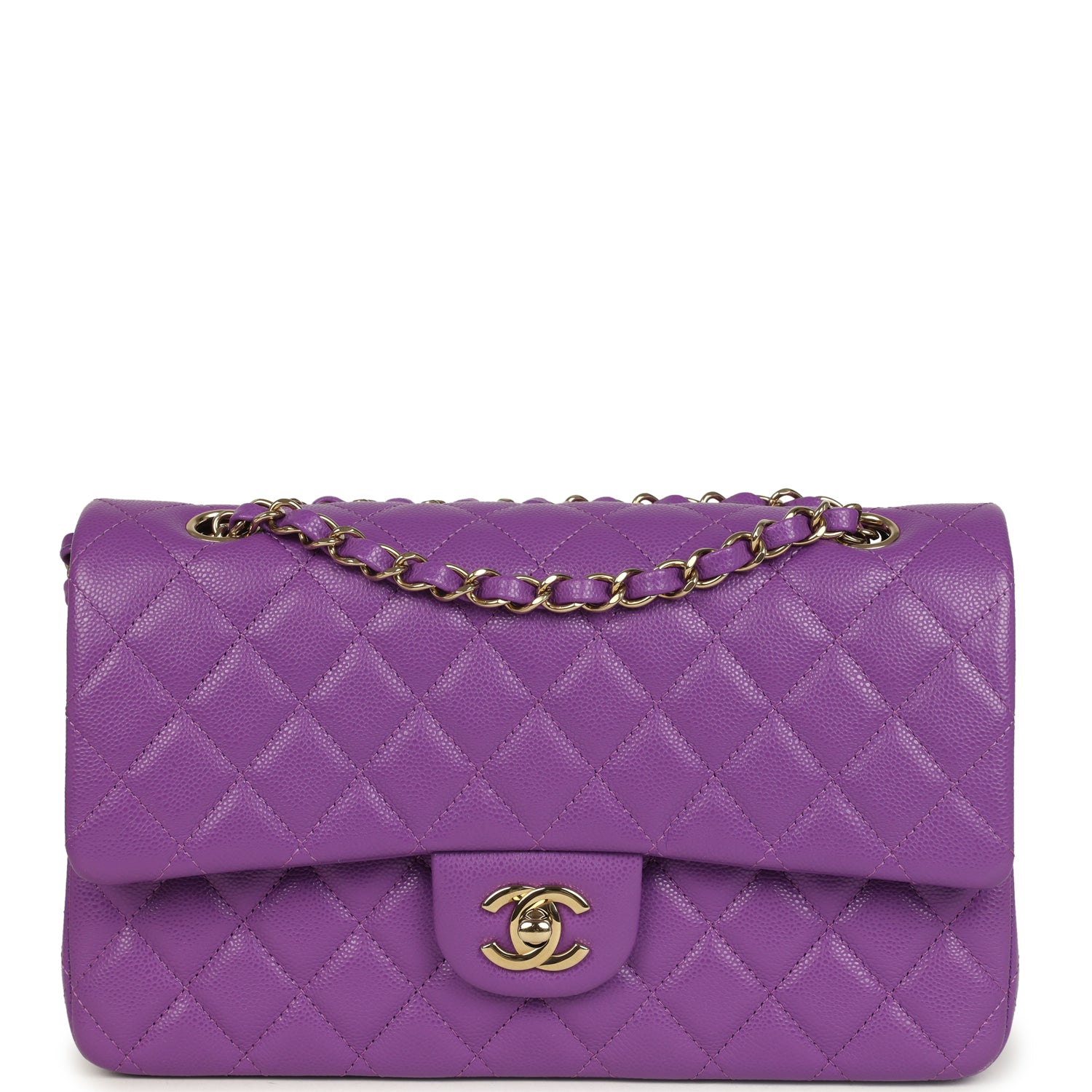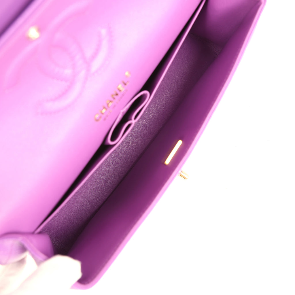 Pre-owned Chanel Medium Classic Double Flap Bag Dark Purple Shiny Caviar Light Gold Hardware