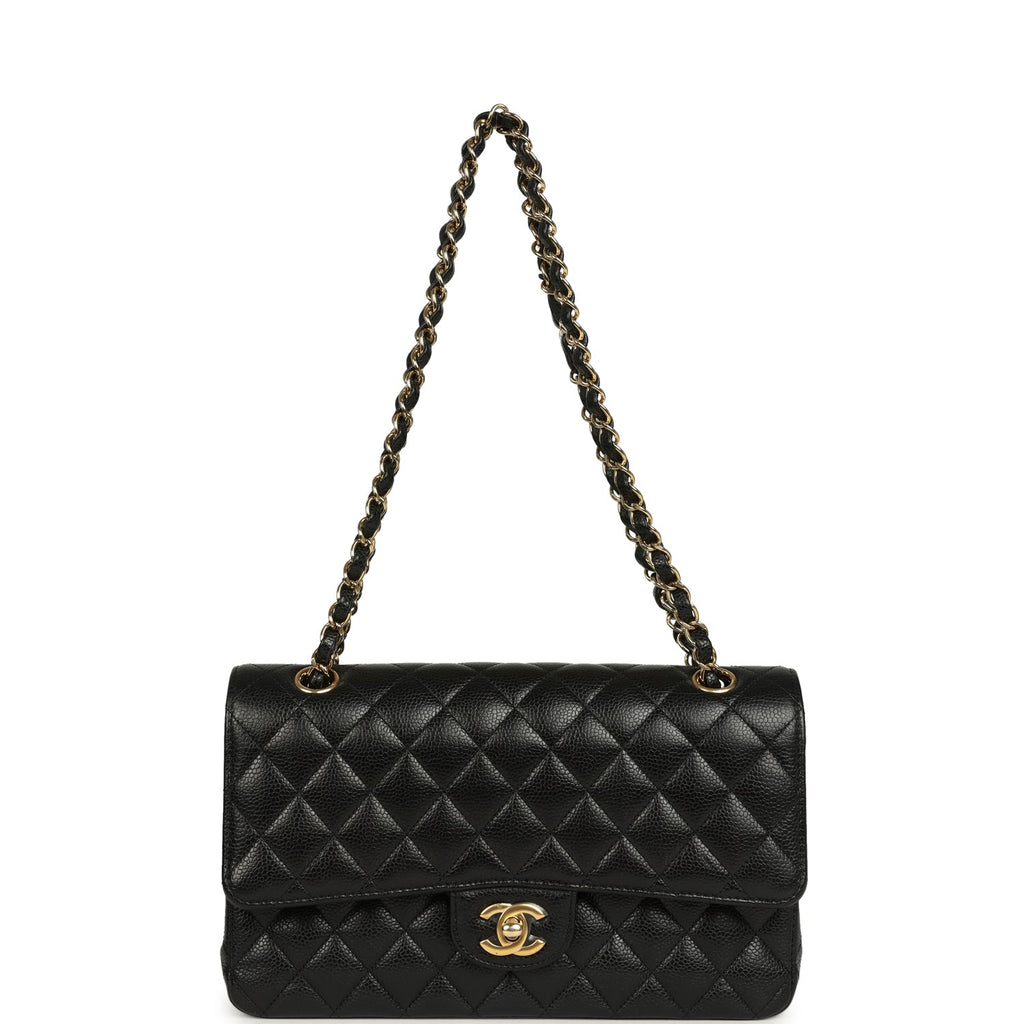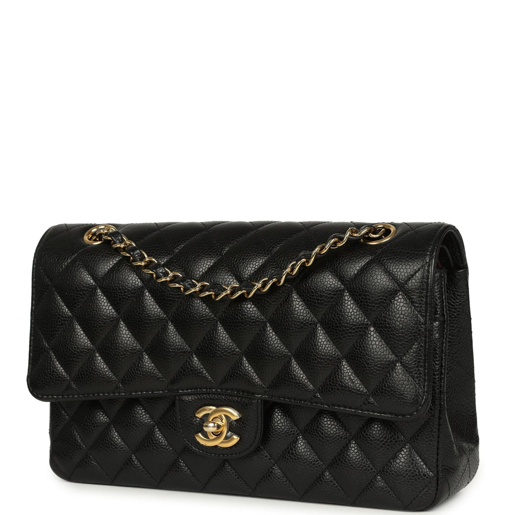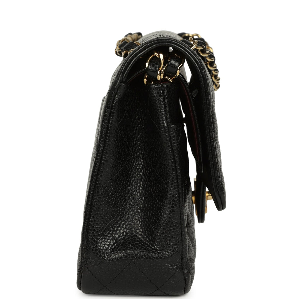 Pre-owned Chanel Medium Classic Double Flap Black Caviar Gold Hardware