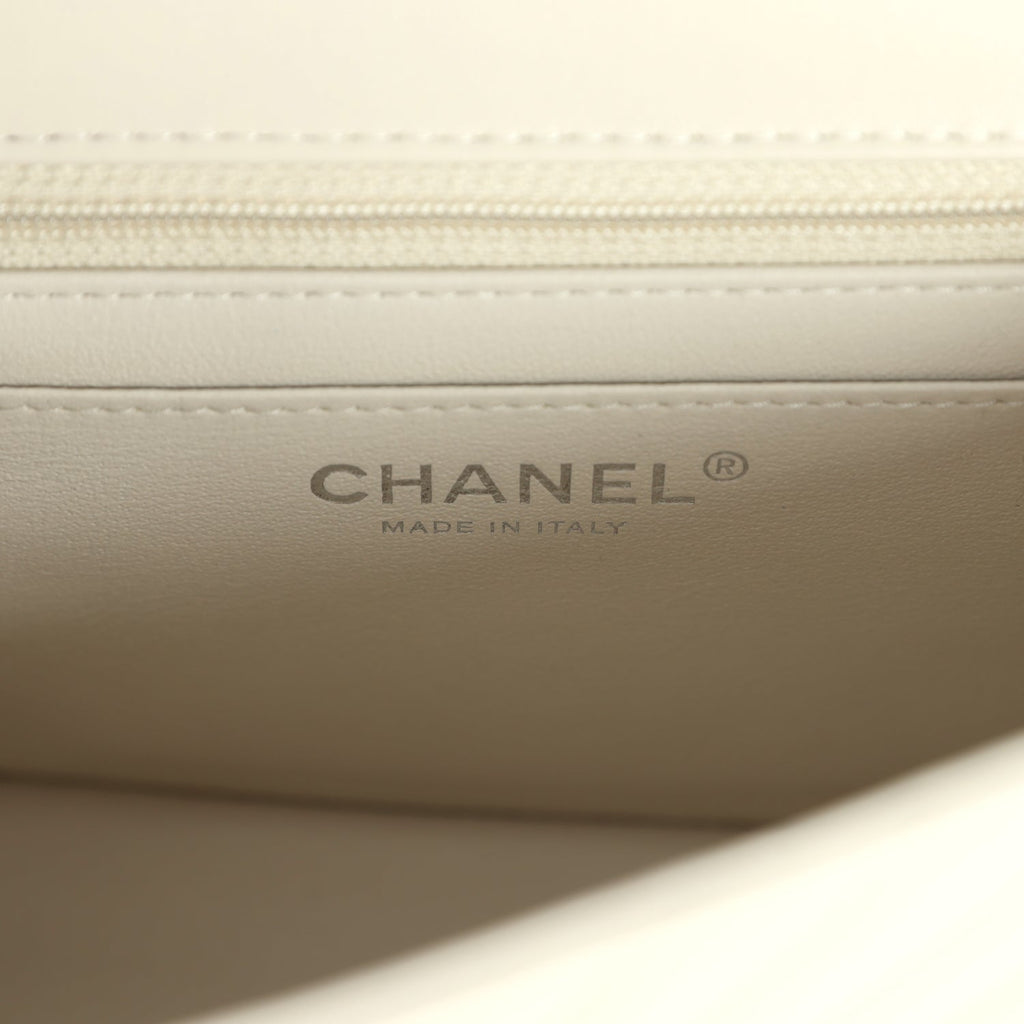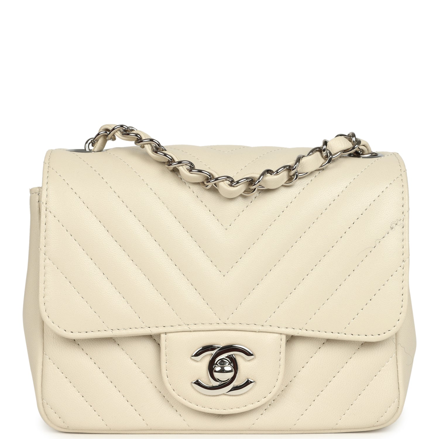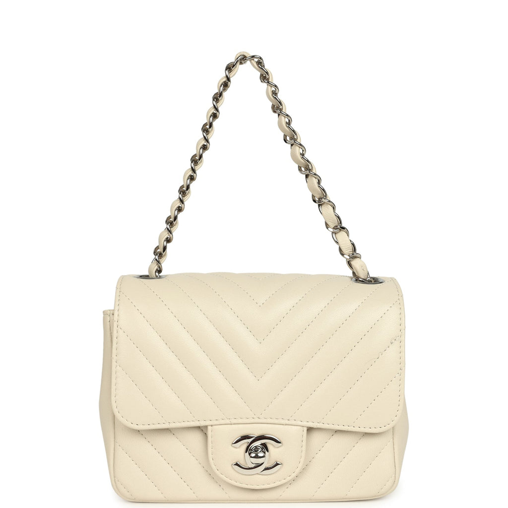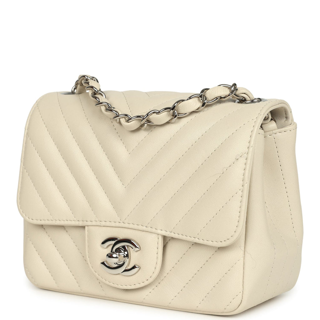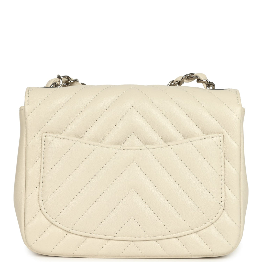 Pre-owned Chanel Mini Chevron Square Flap Bag Ivory Lambskin Silver Hardware