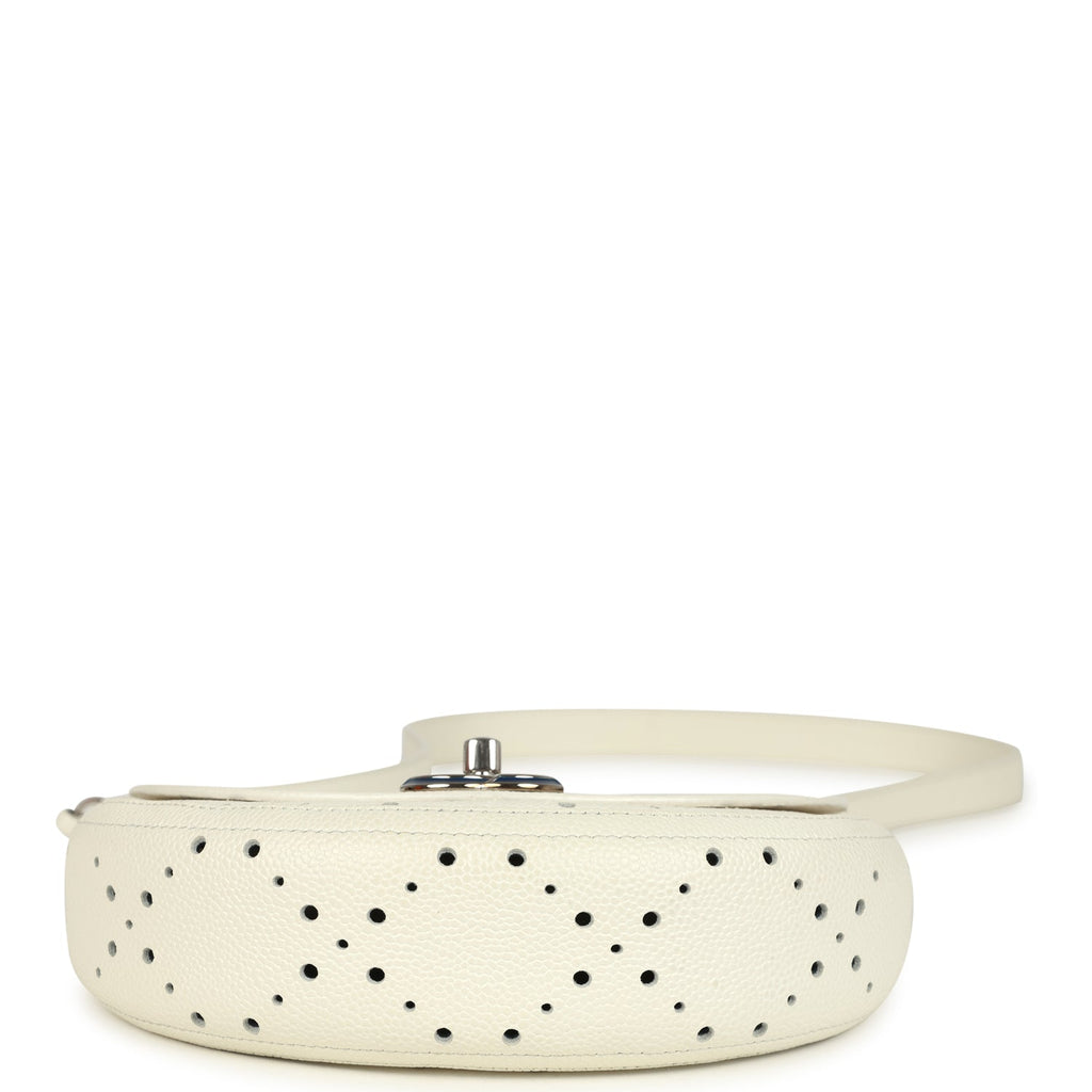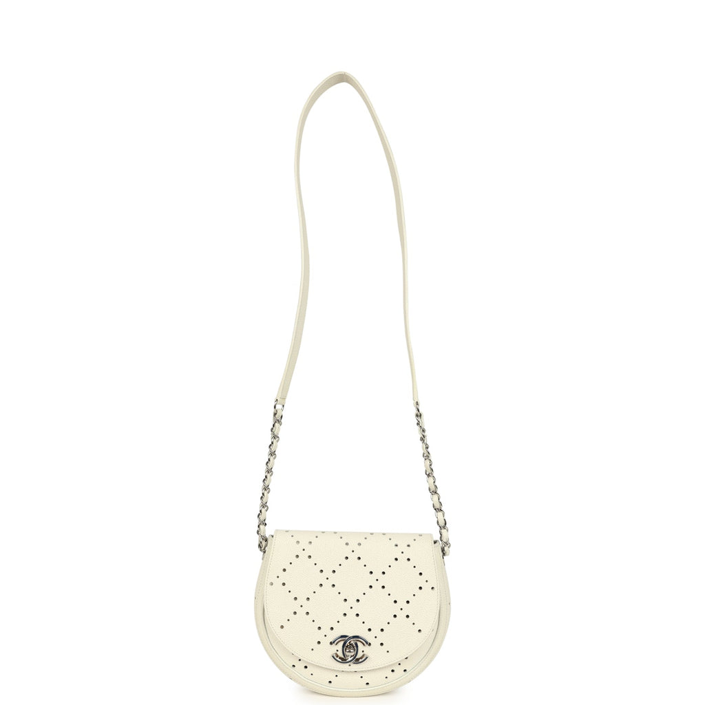 Pre-owned Chanel Perforated Messenger Bag White Caviar Silver Hardware