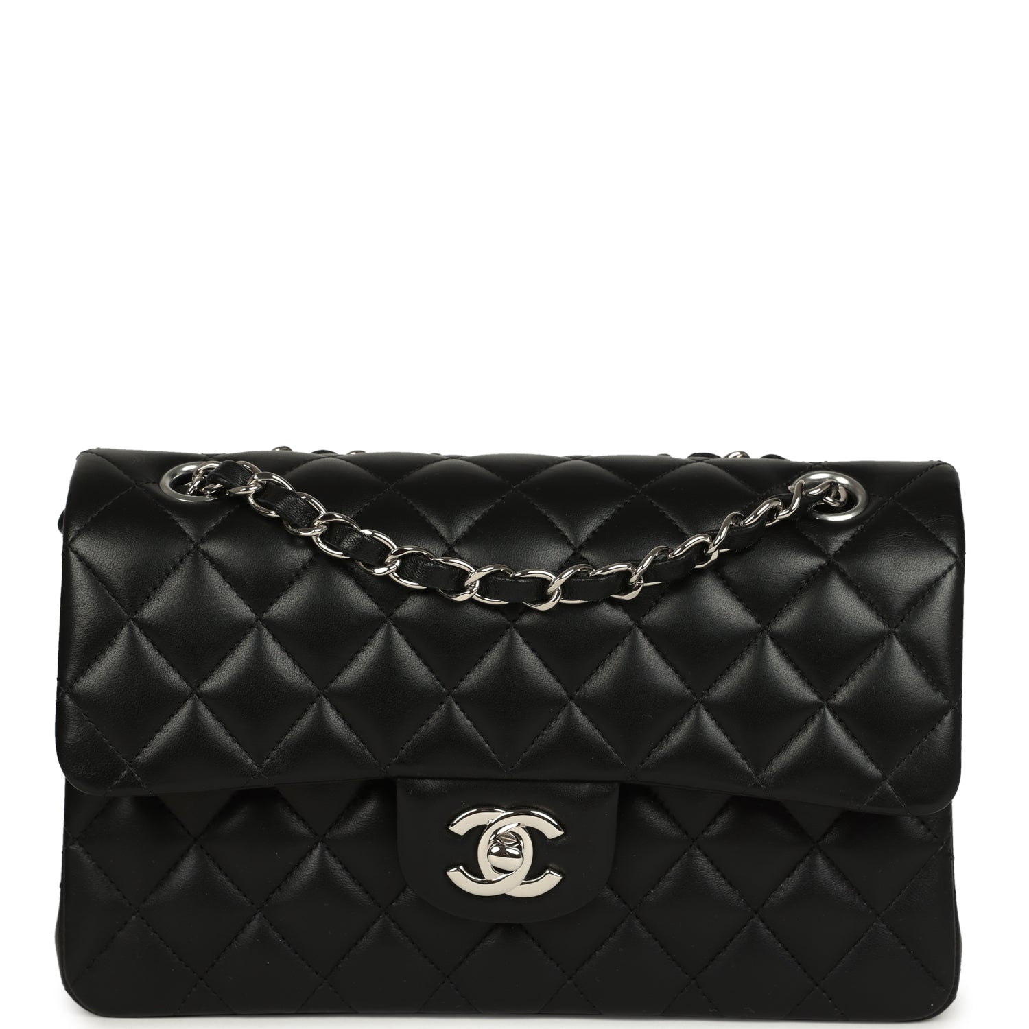 Pre-owned Chanel Small Classic Double Flap Bag Black Lambskin Silver Hardware