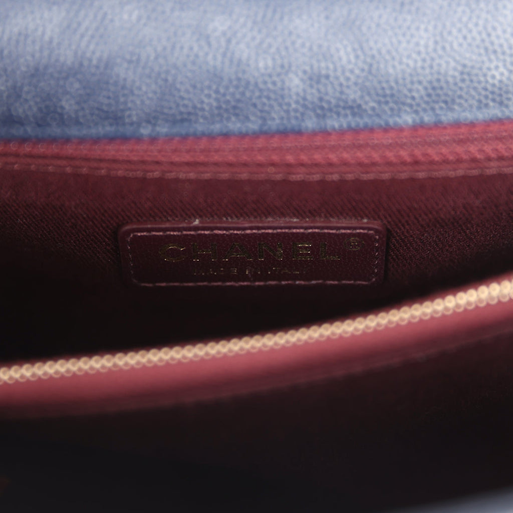 Pre-owned Chanel Small Coco Top Handle Navy Blue Chevron Caviar Antique Gold Hardware