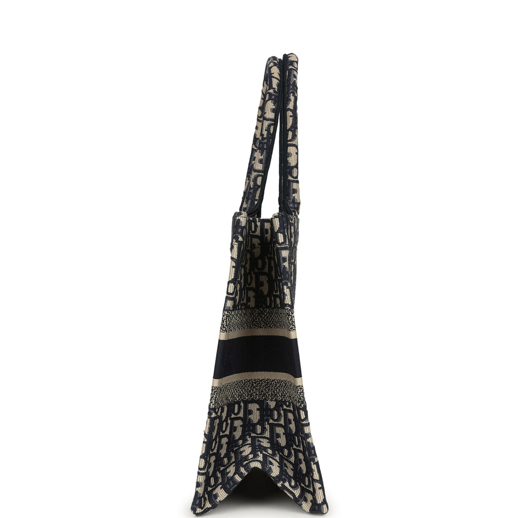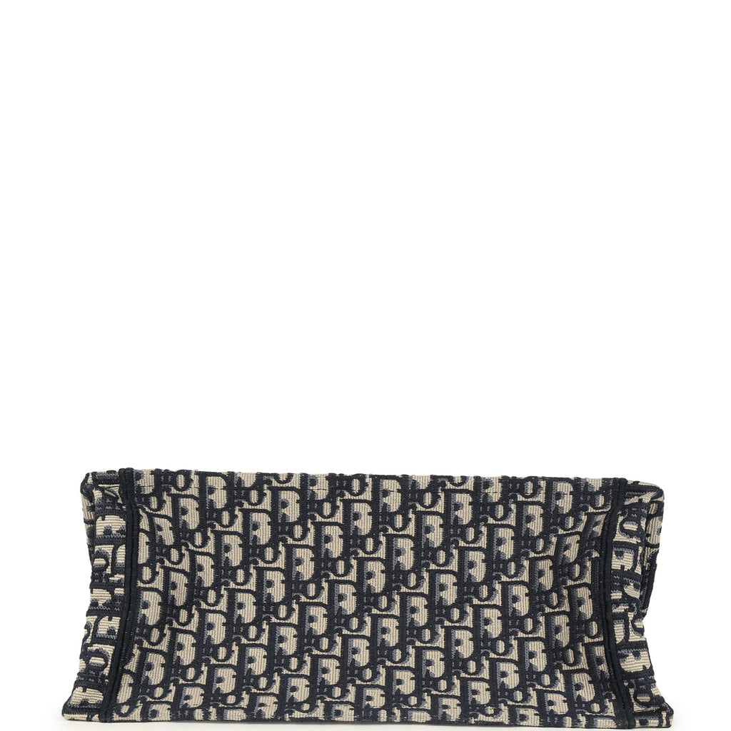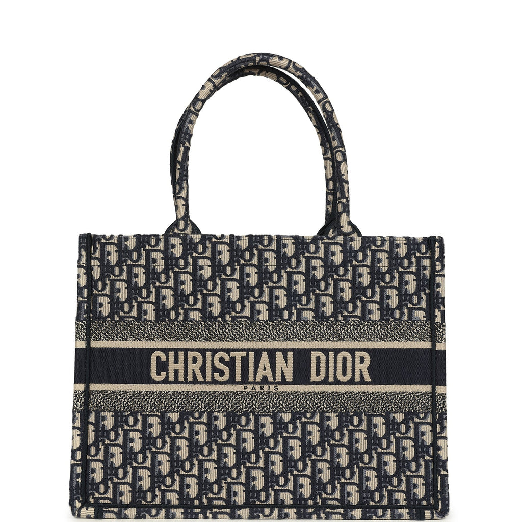Pre-owned Christian Dior "Oblique" Medium Book Tote Ecru and Navy Blue Embroidered Canvas