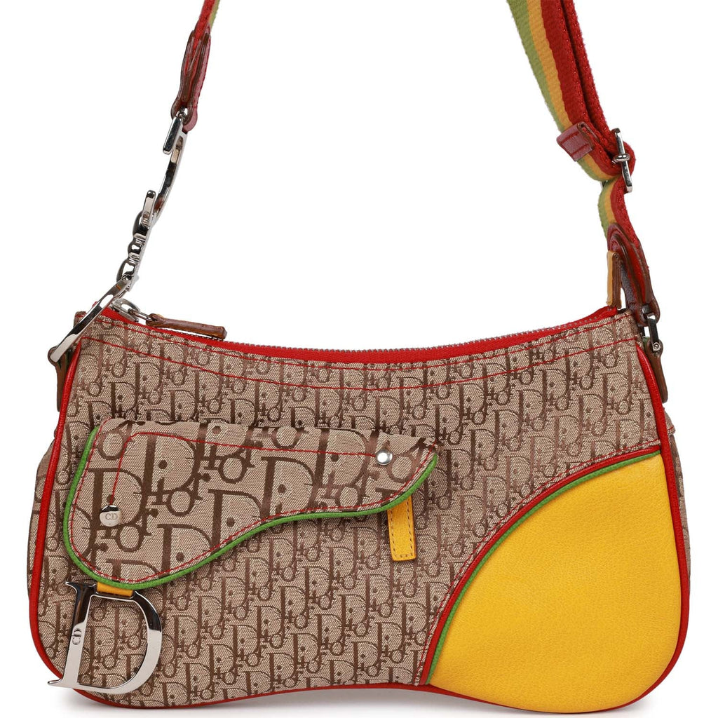 Pre-owned Christian Dior Saddle Bag Rasta Trotter Canvas Silver Hardware