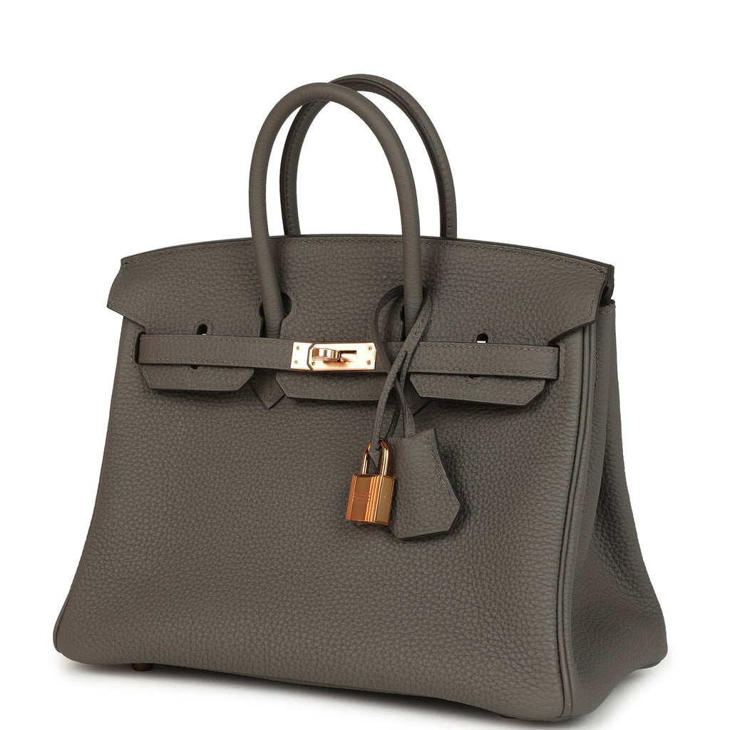 Pre-owned Hermes Birkin 25 Etain Togo Rose Gold Hardware