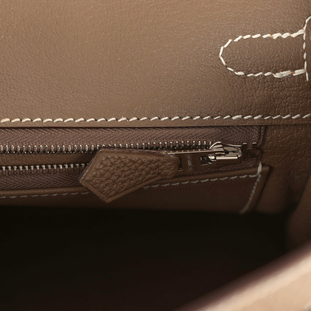 Pre-owned Hermes Birkin 25 Etoupe Togo Palladium Hardware