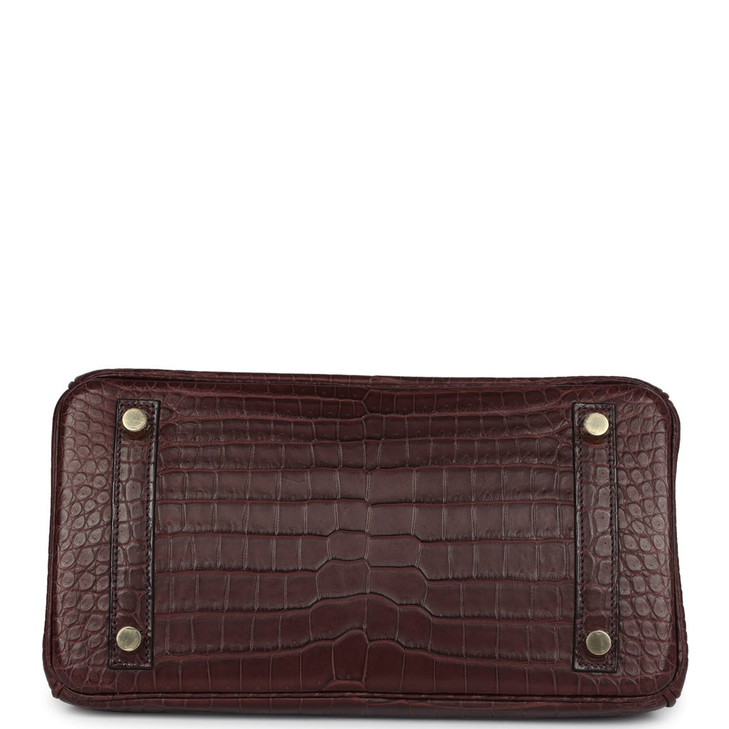 Pre-owned Hermes Birkin 25 Rouge Sellier Matte Porosus Crocodile Gold Hardware