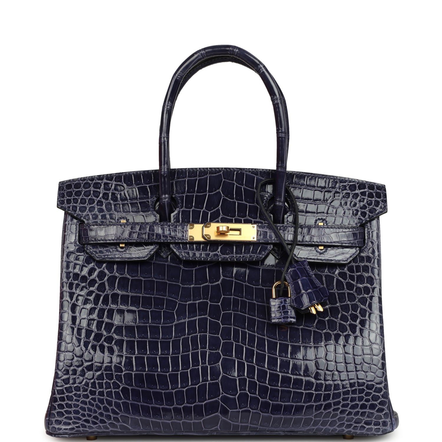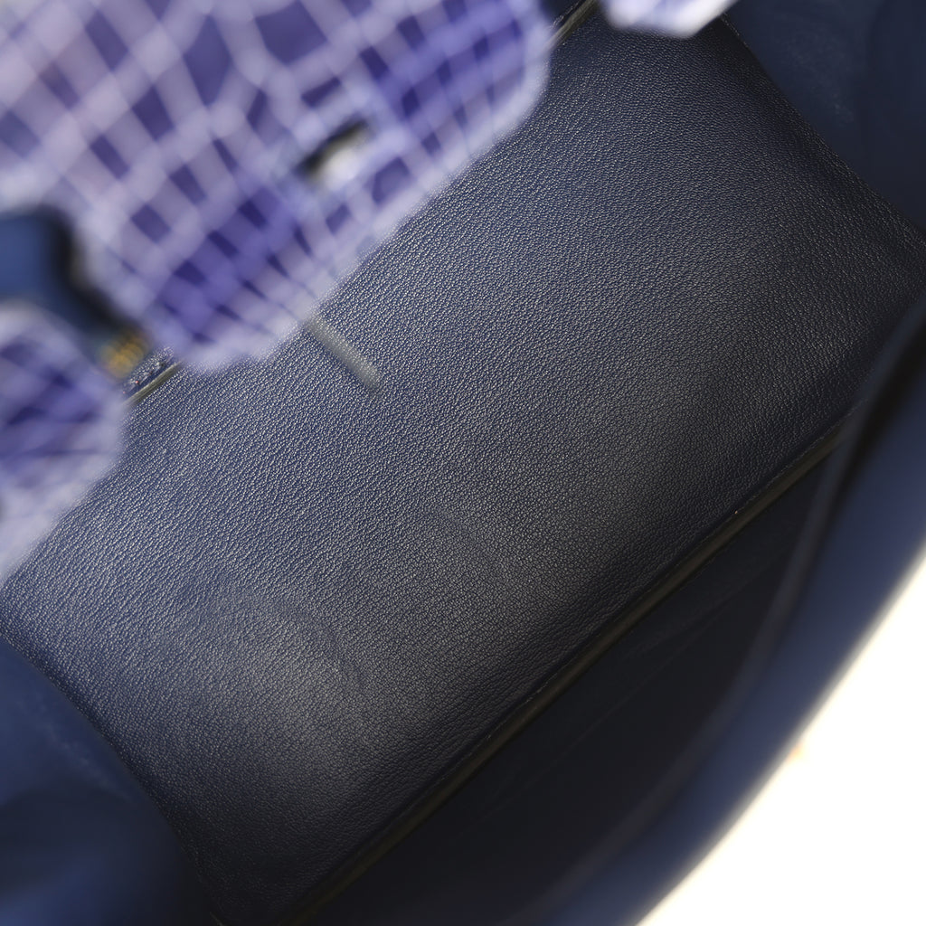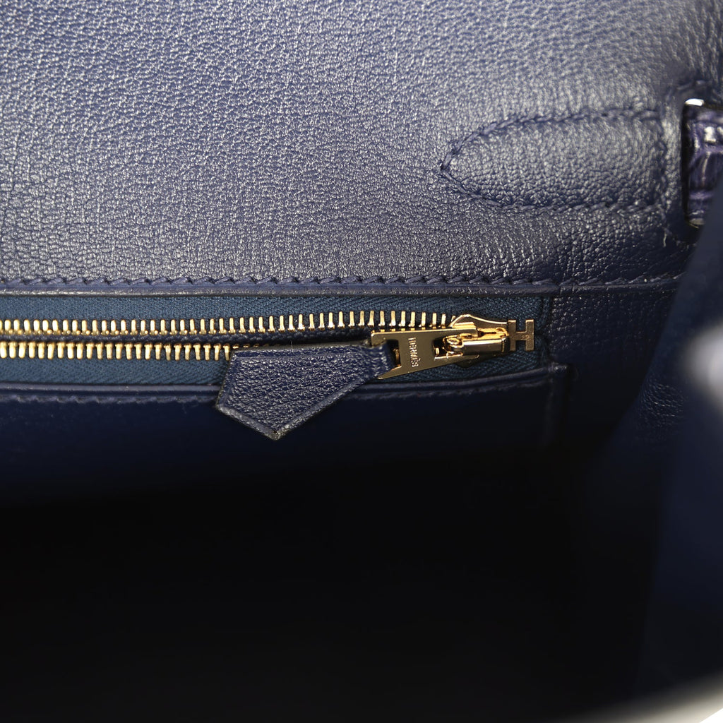 Pre-owned Hermes Birkin 30 Bleu Encre Shiny Porosus Crocodile Gold Hardware