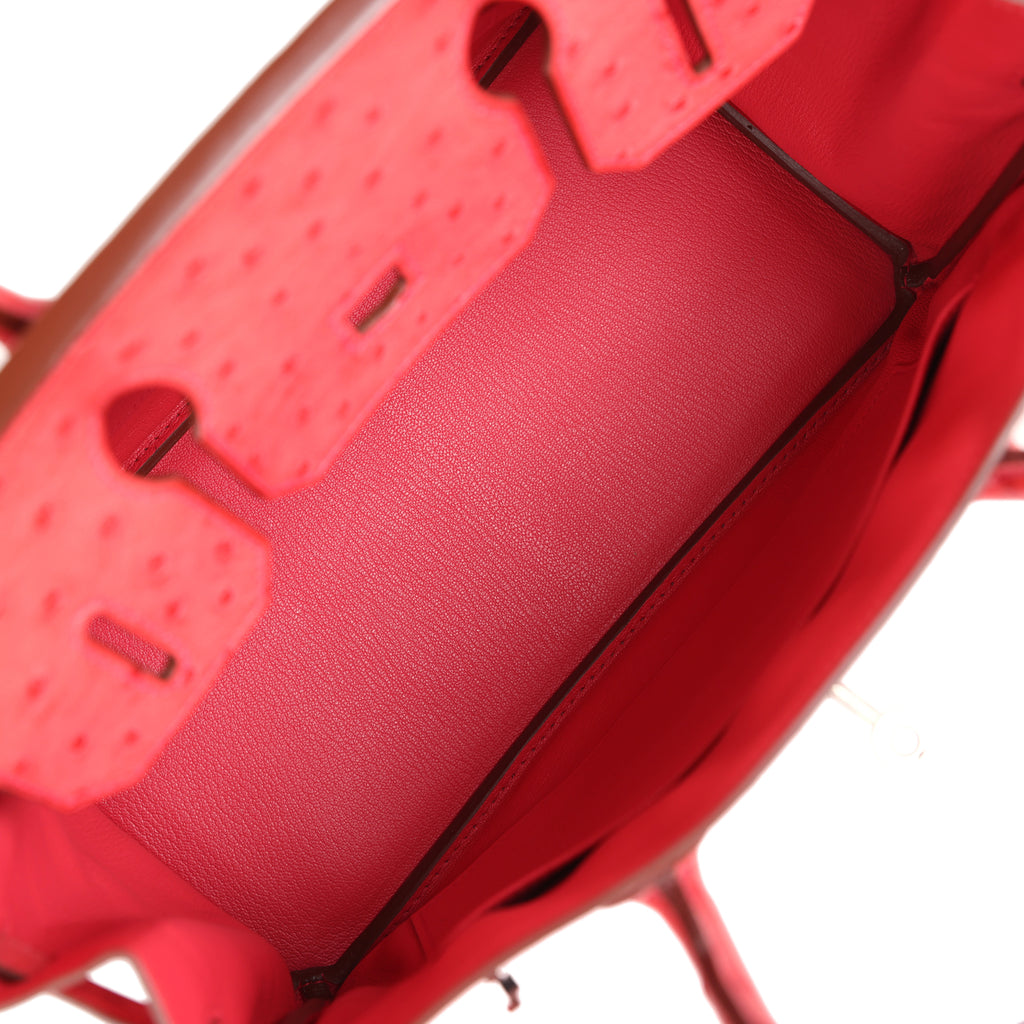 Pre-owned Hermes Birkin 30 Bougainvillea Ostrich Palladium Hardware