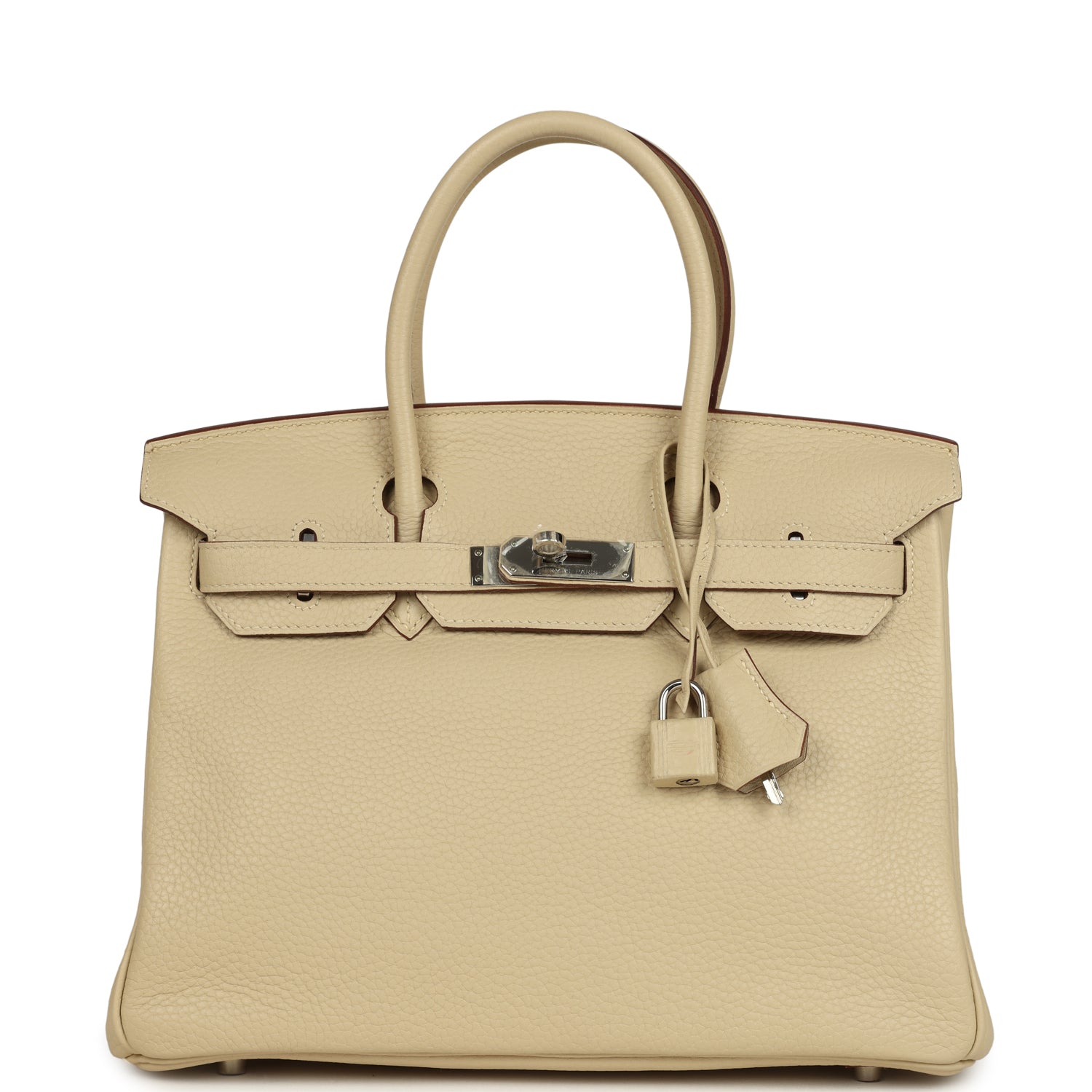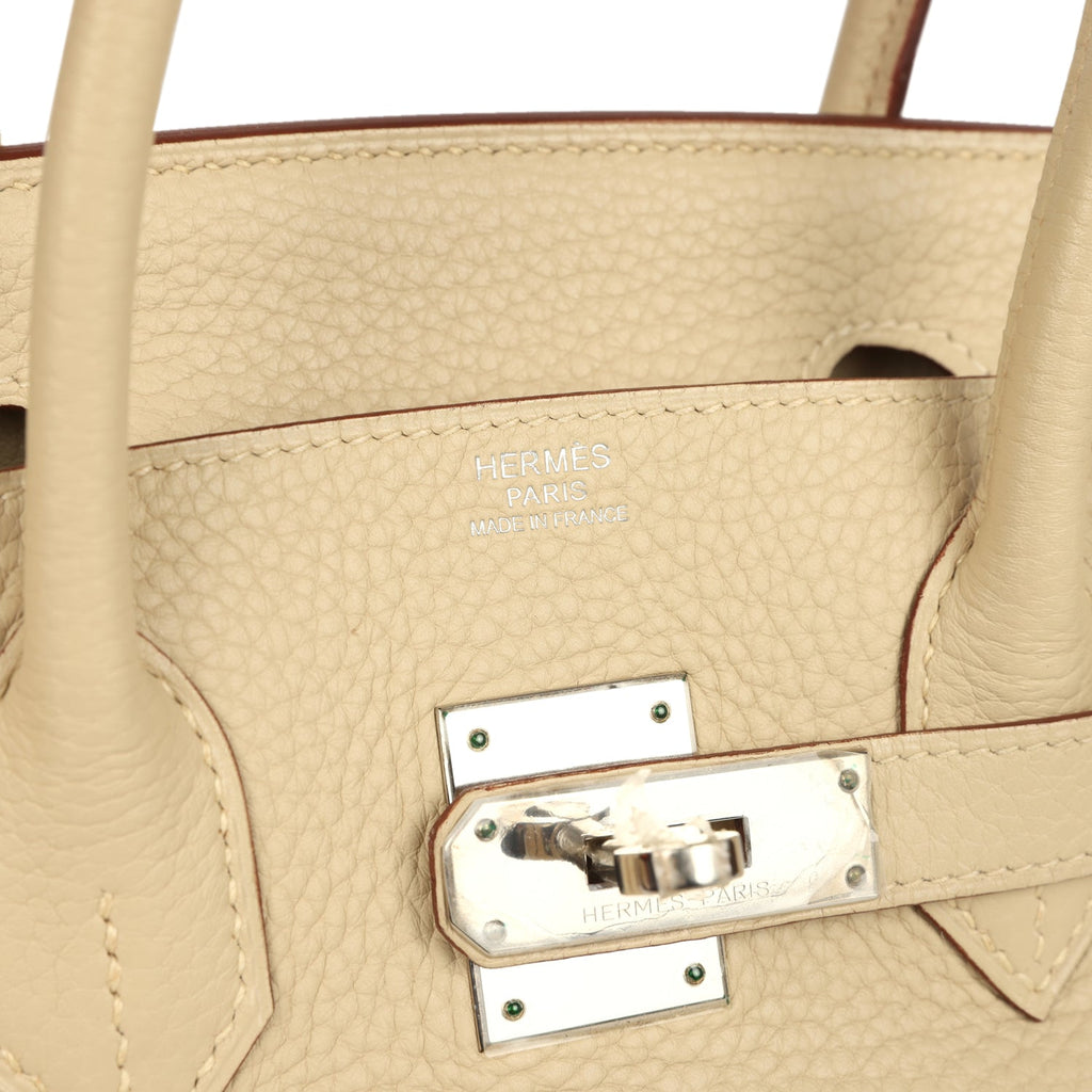 Pre-owned Hermes Birkin 30 Parchemin Clemence Palladium Hardware