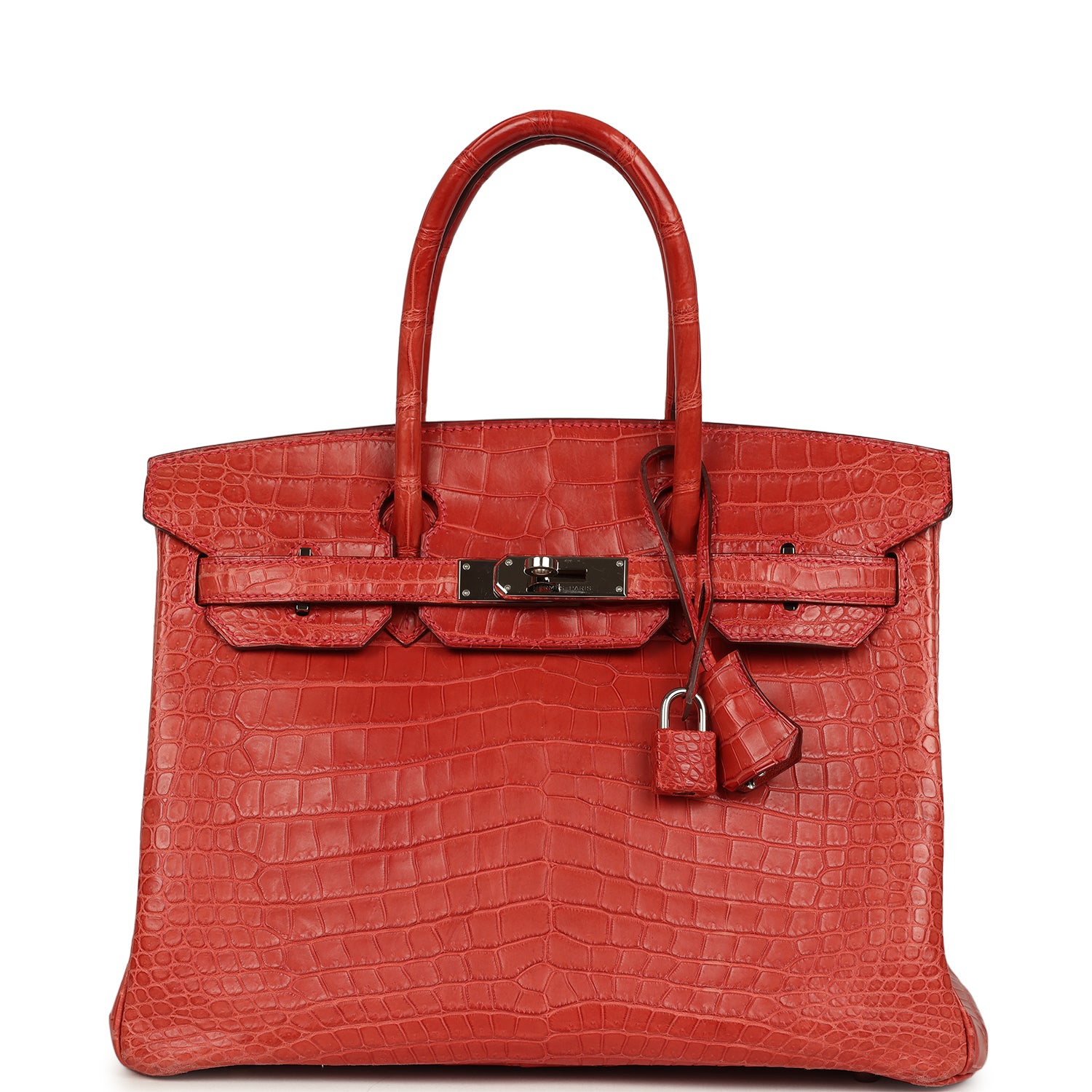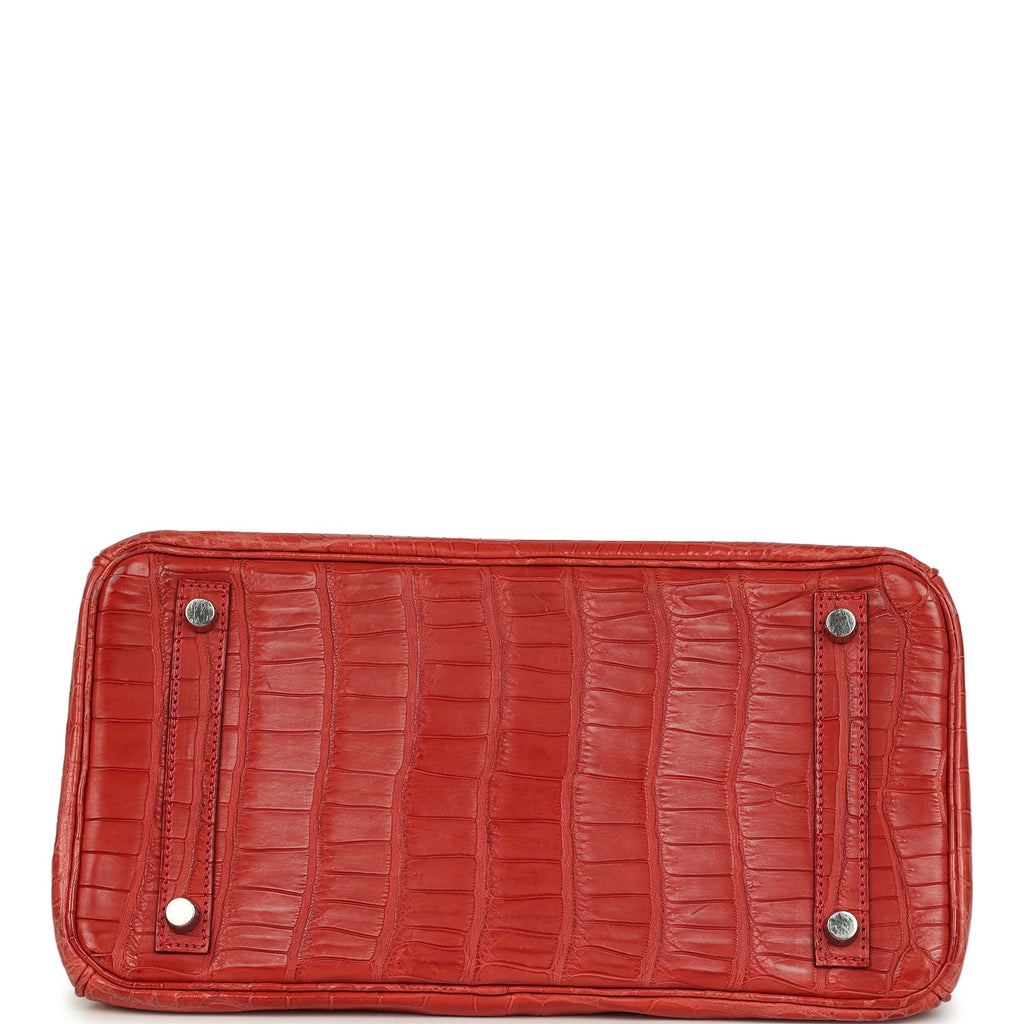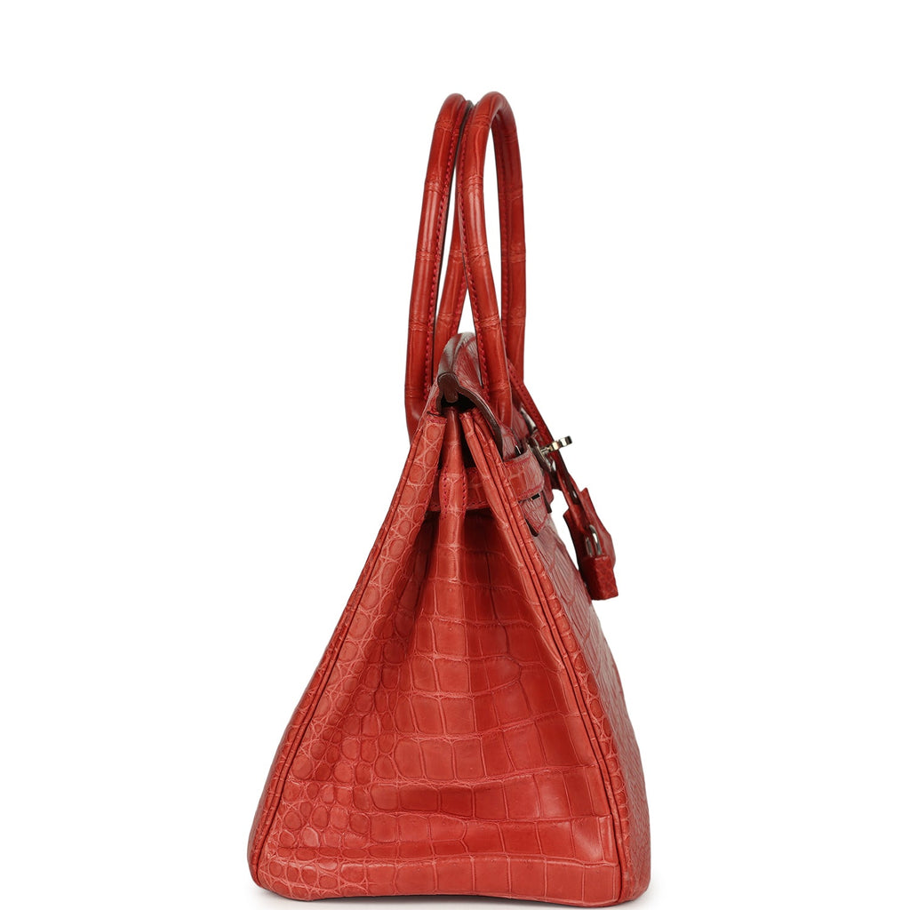 Pre-owned Hermes Birkin 30 Rouge Indien Matte Porosus Crocodile Palladium Hardware