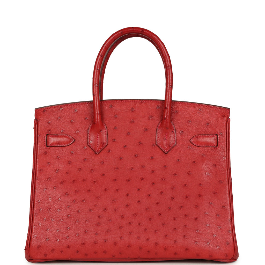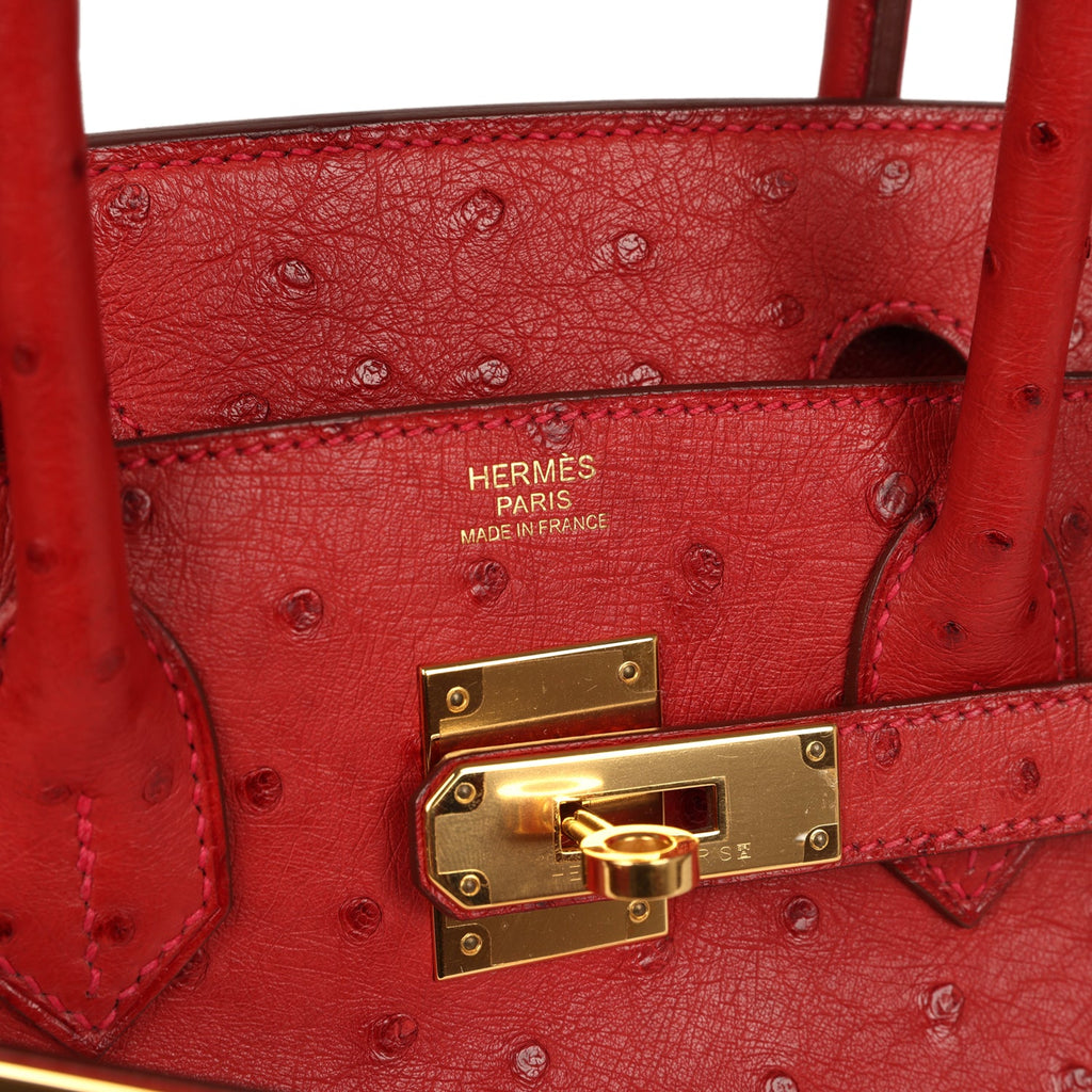 Pre-owned Hermes Birkin 30 Rouge Vif Ostrich Gold Hardware