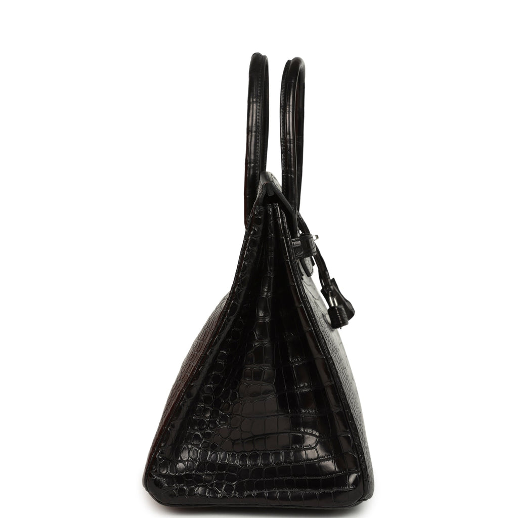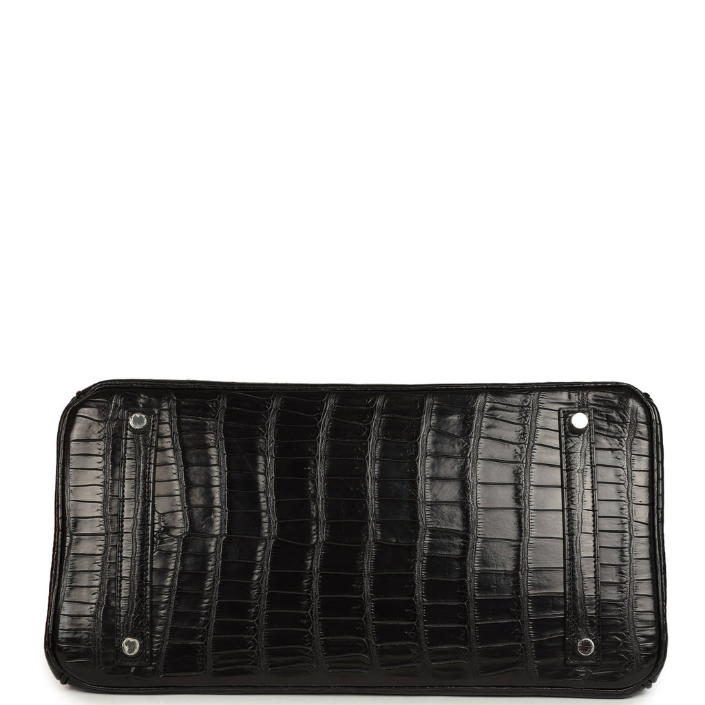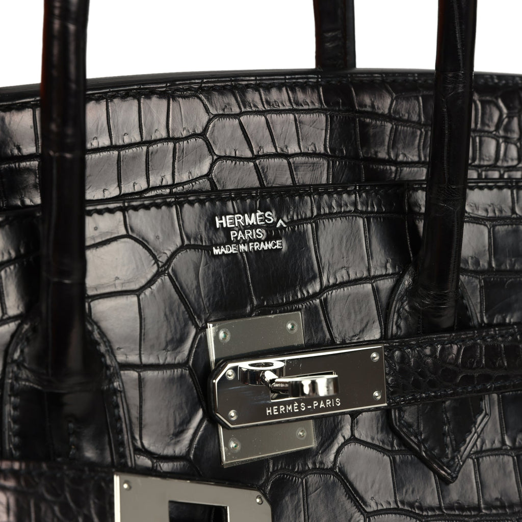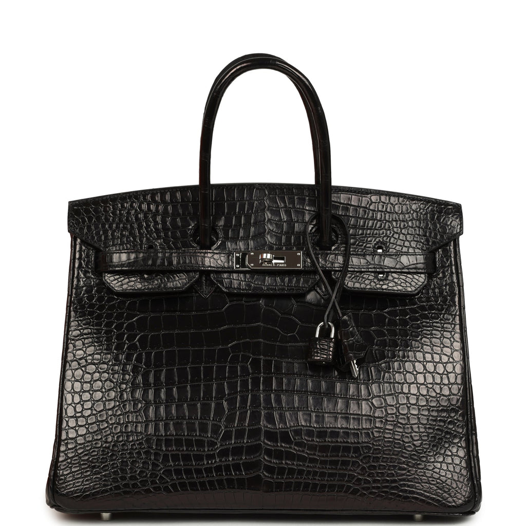 Pre-owned Hermes Birkin 35 Black Matte Porosus Crocodile Palladium Hardware