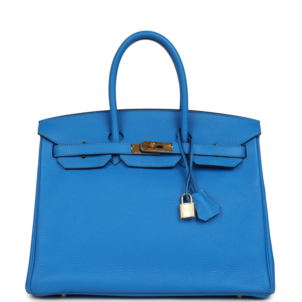 Pre-owned Hermes Birkin 35 Bleu Hydra Clemence Gold Hardware