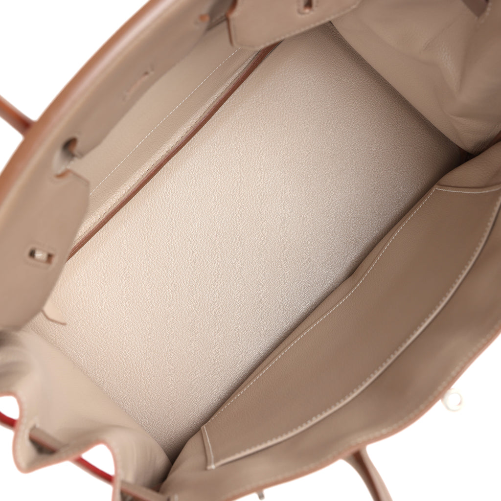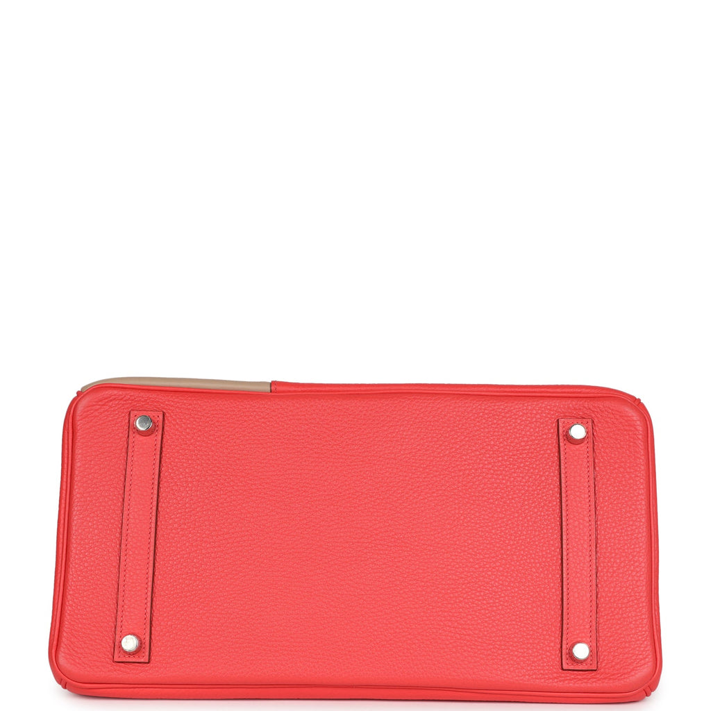 Pre-owned Hermes Birkin 35 Cascade Rose Jaipur, Etoupe and Argile Swift and Clemence Brushed Palladium Hardware
