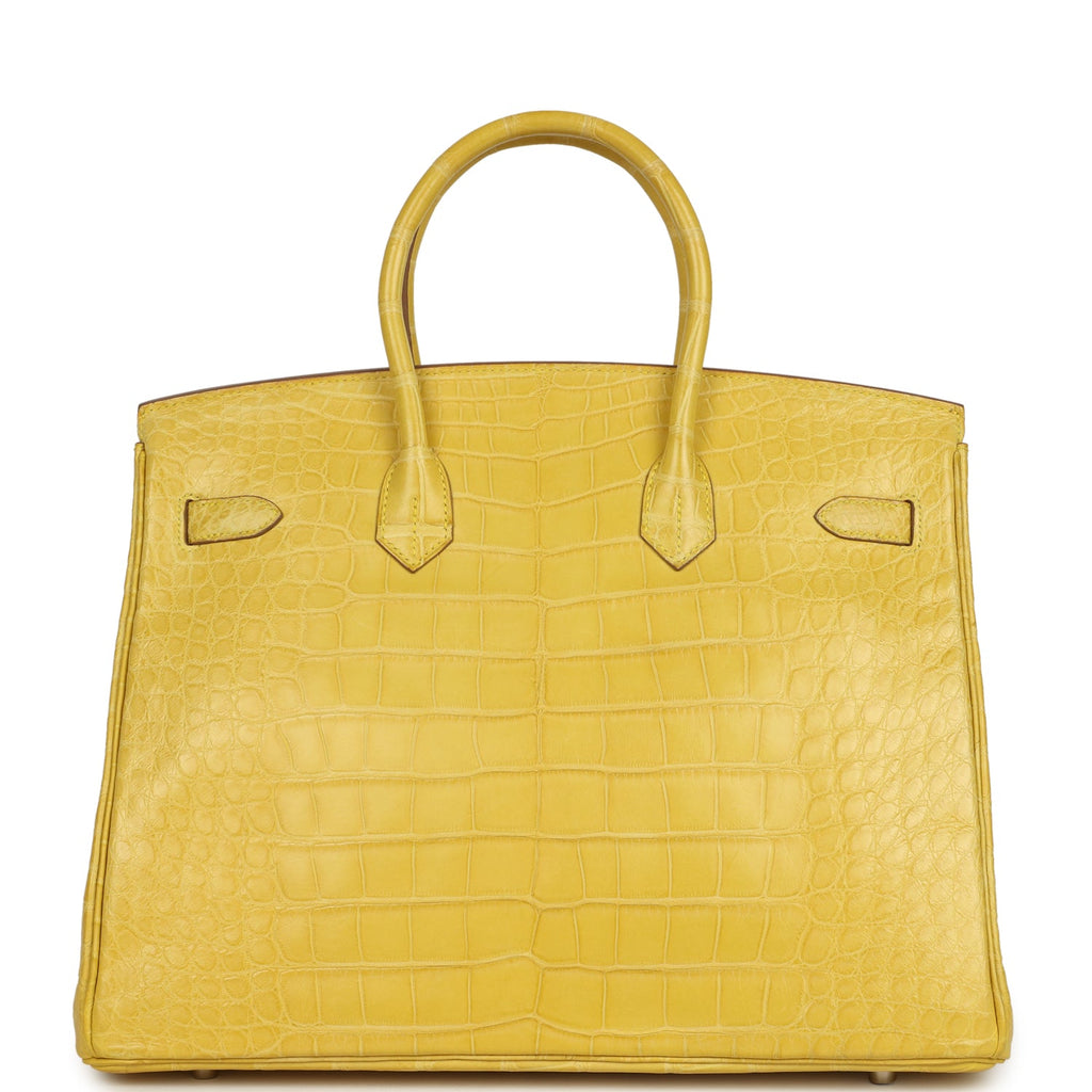 Pre-owned Hermes Birkin 35 Mimosa Matte Alligator Palladium Hardware