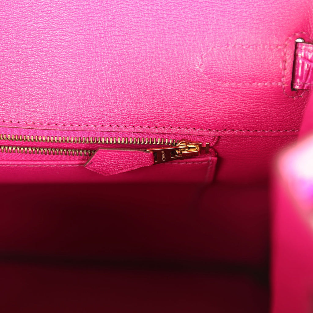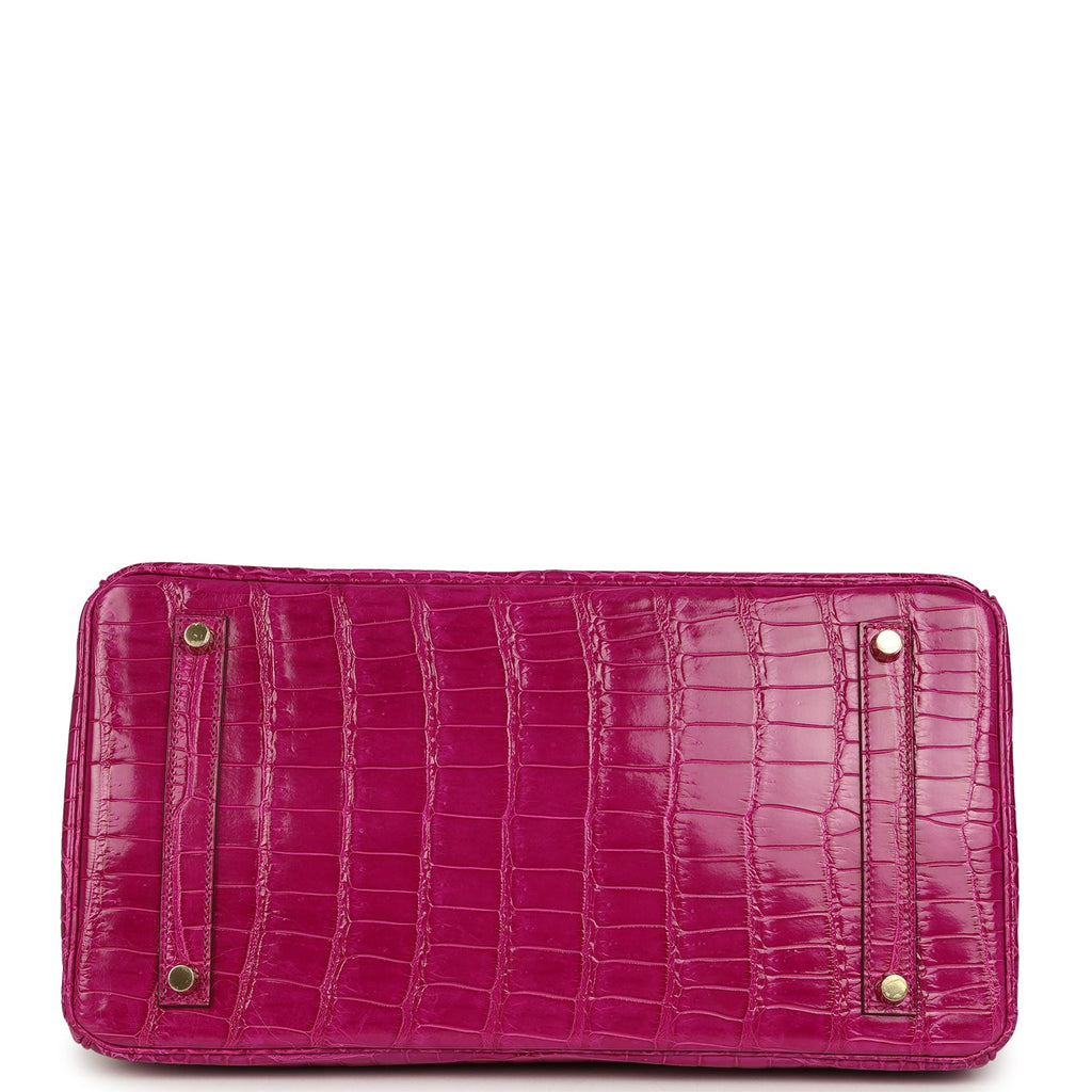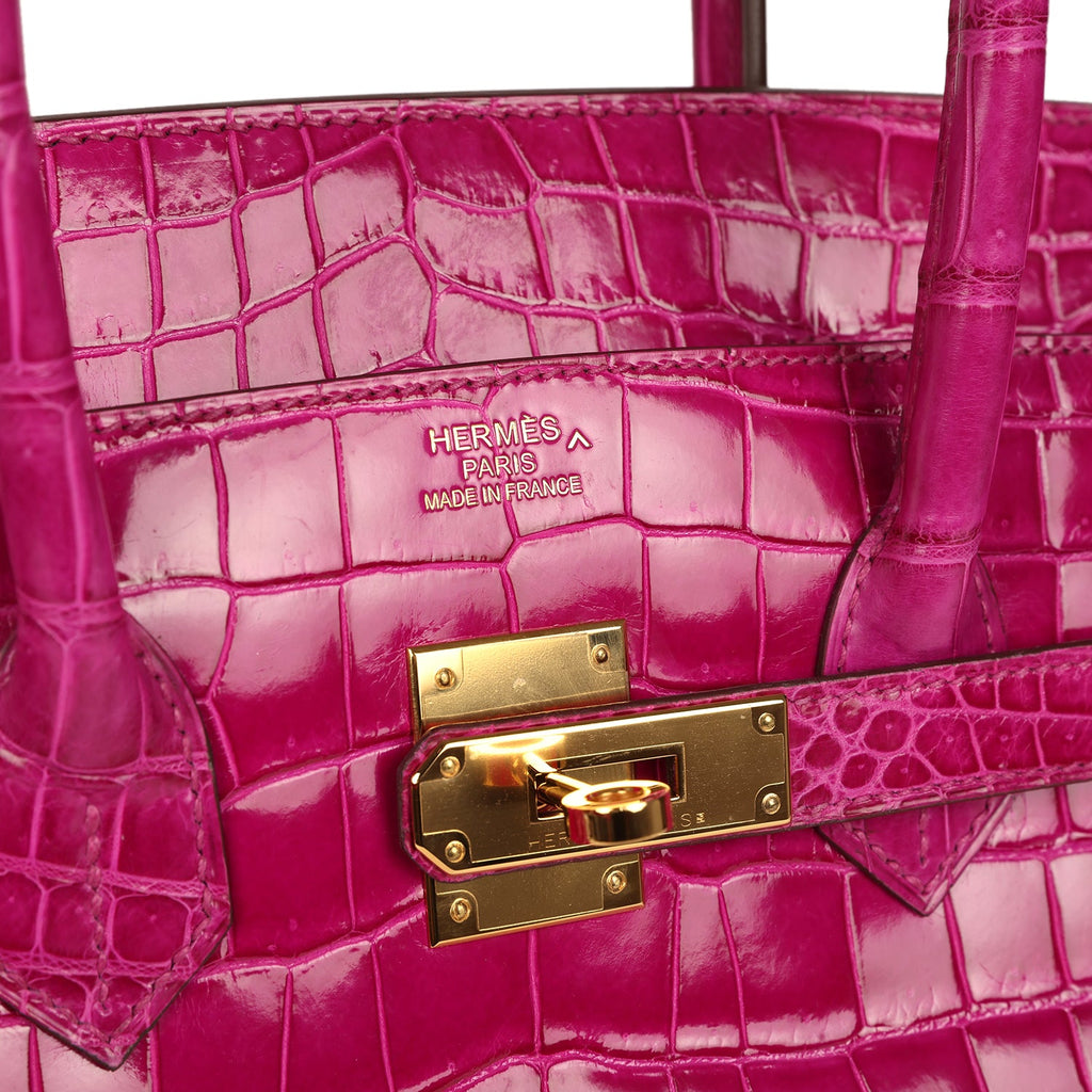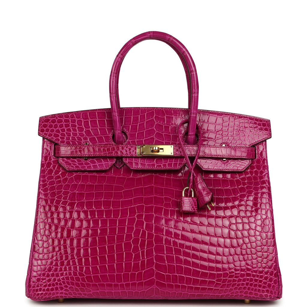 Pre-owned Hermes Birkin 35 Rose Scheherazade Shiny Porosus Crocodile Gold Hardware