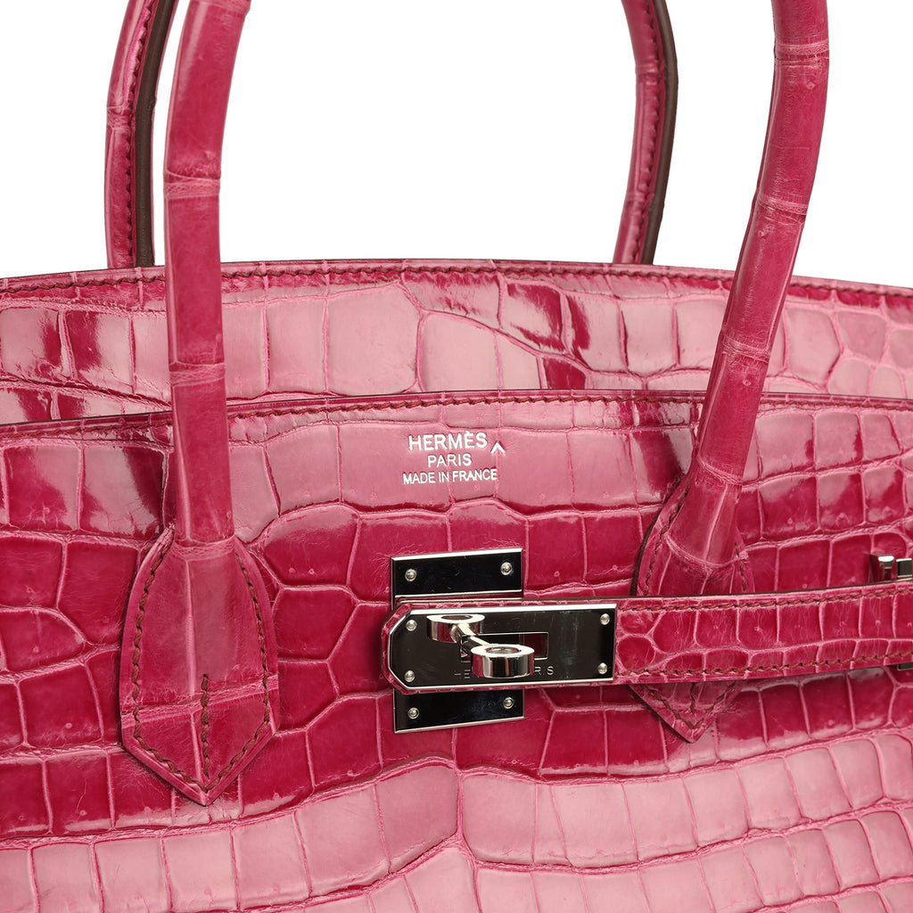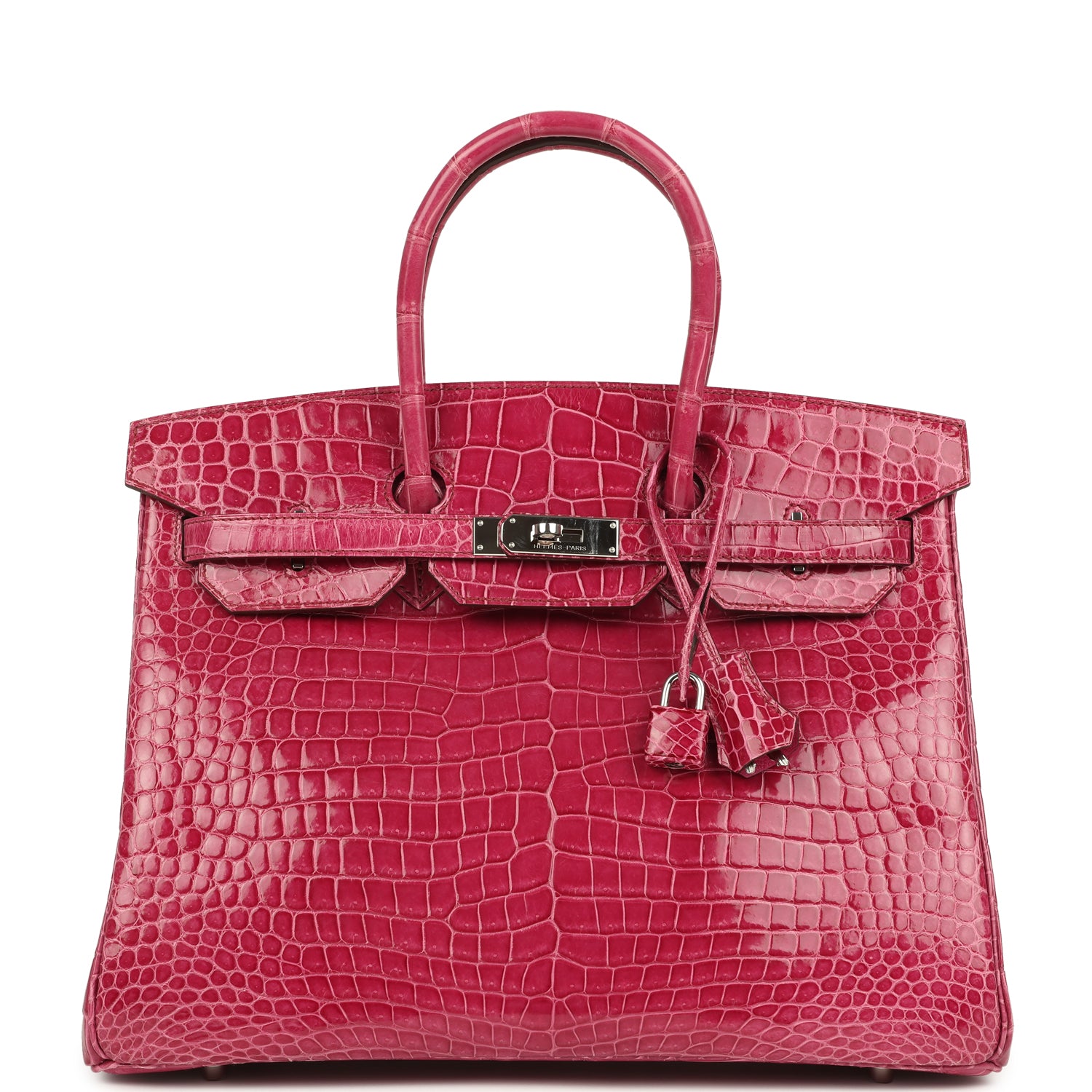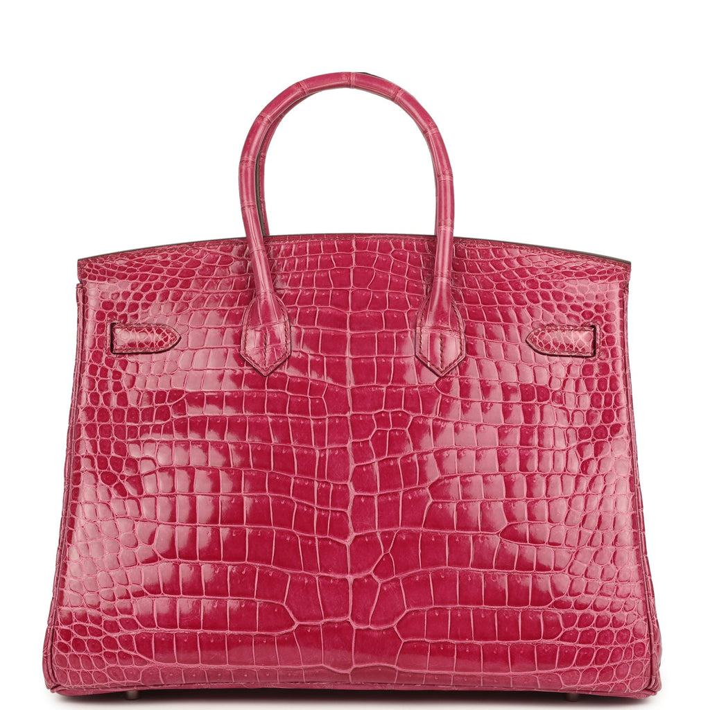 Pre-owned Hermes Birkin 35 Rose Tyrien Shiny Porosus Crocodile Palladium Hardware