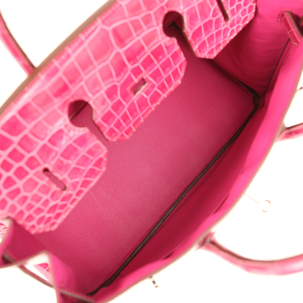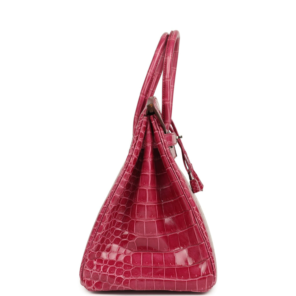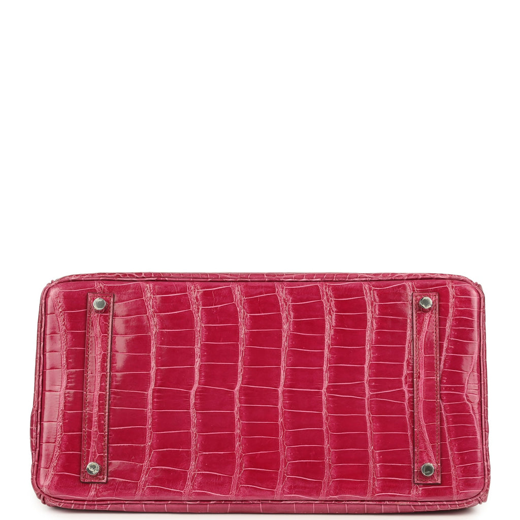 Pre-owned Hermes Birkin 35 Rose Tyrien Shiny Porosus Crocodile Palladium Hardware