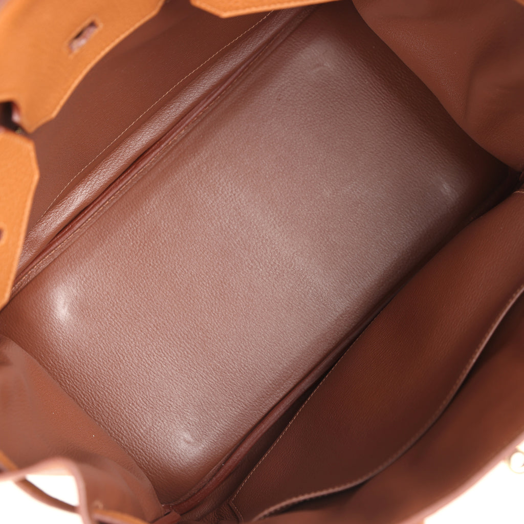 Pre-owned Hermes Birkin Club 35 Gold and Marron d'Inde Clemence and Ficelle Lizard Permabrass Hardware