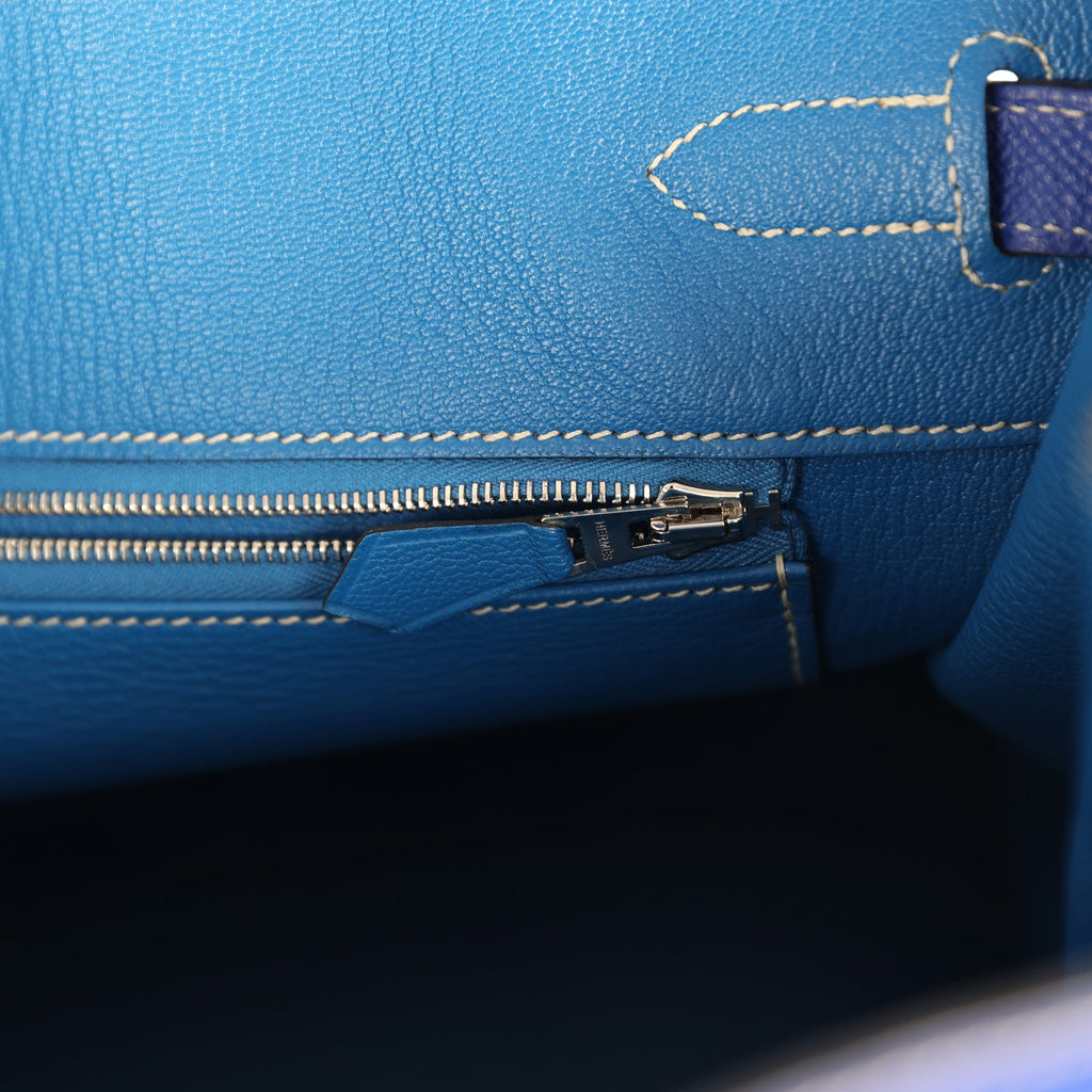 Pre-owned Hermes Candy Birkin 35 Bleu Electric Verso Epsom Palladium Hardware