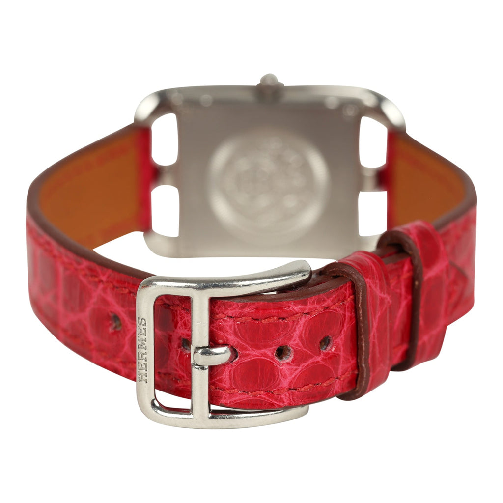Pre-owned Hermes Cape Cod Watch Large Braise Shiny Alligator Steel Hardware & Diamonds