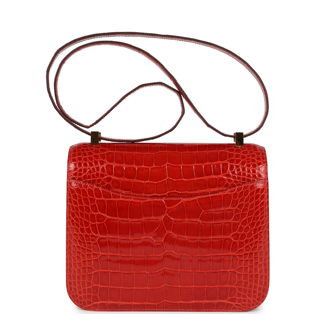 Pre-owned Hermes Constance 24 Geranium Shiny Alligator Gold Hardware