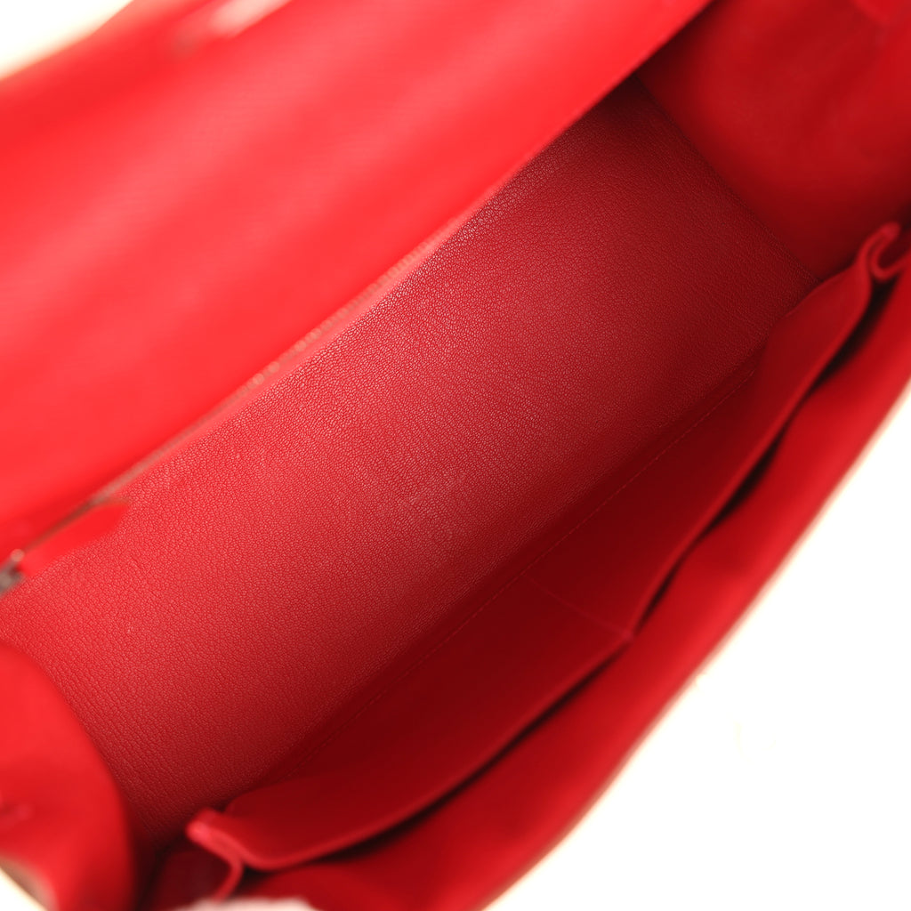 Pre-owned Hermes Flag Kelly Sellier 32 Rouge Casaque and White Epsom Palladium Hardware