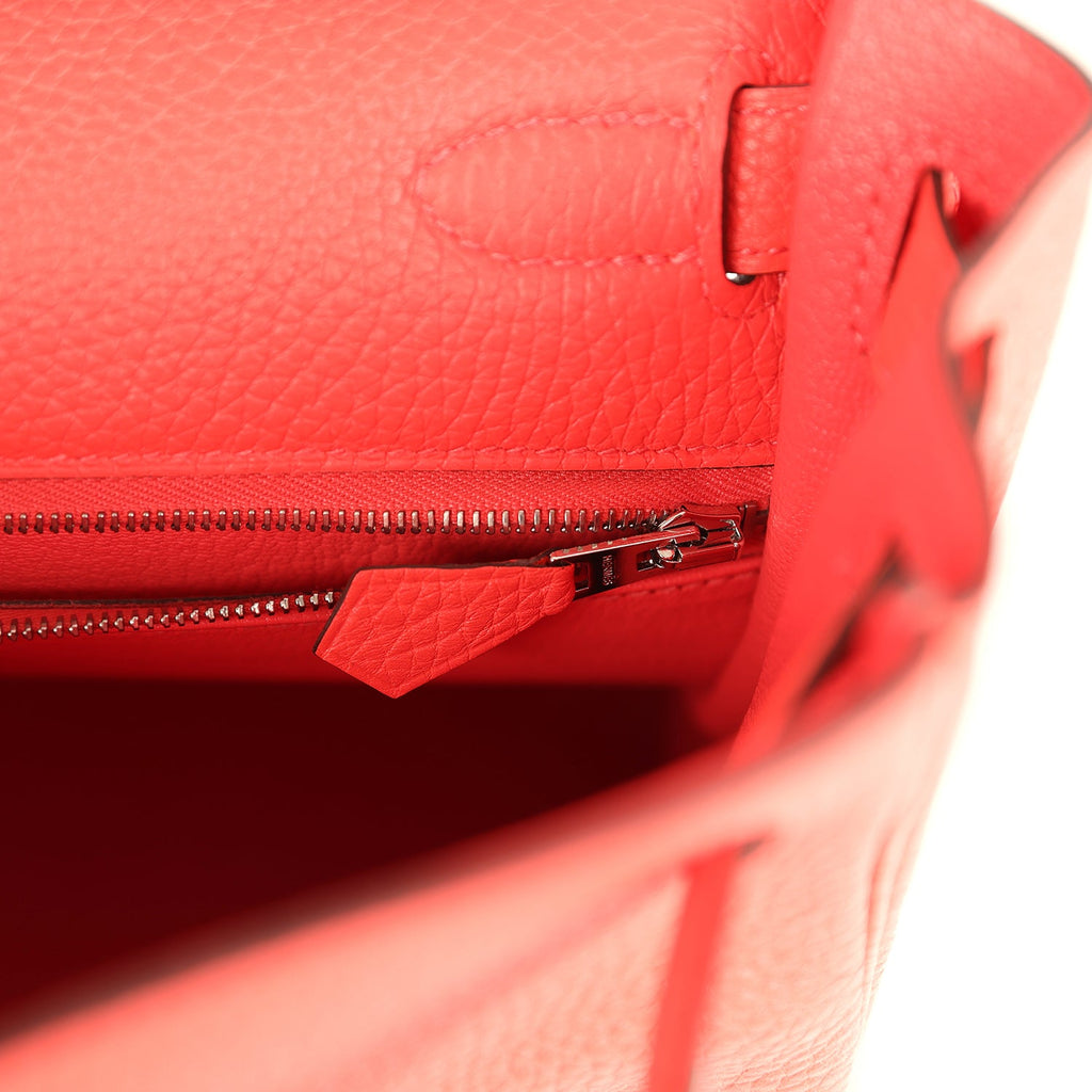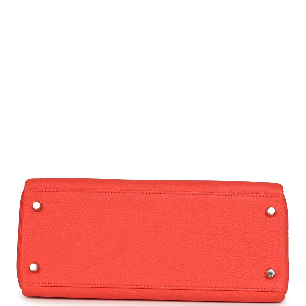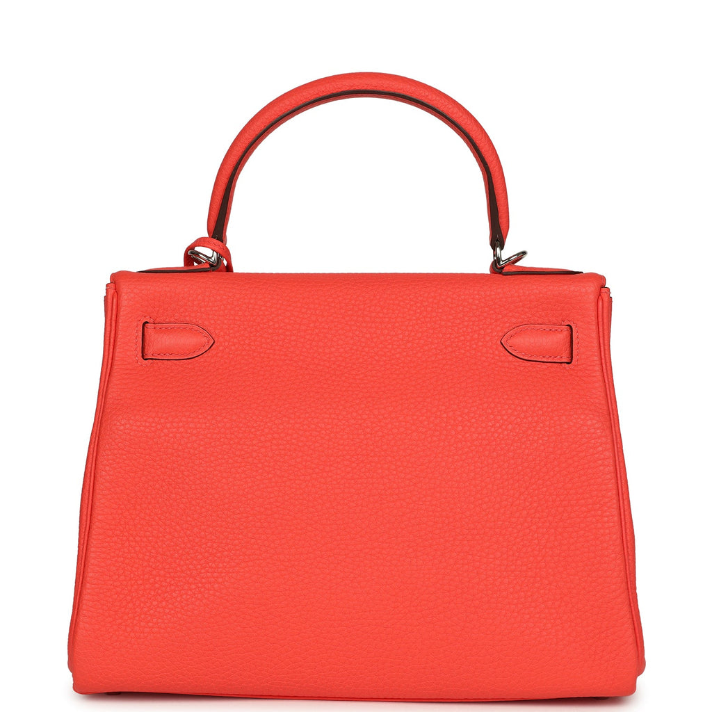 Pre-owned Hermes Kelly Retourne 28 Rose Texas Clemence Palladium Hardware