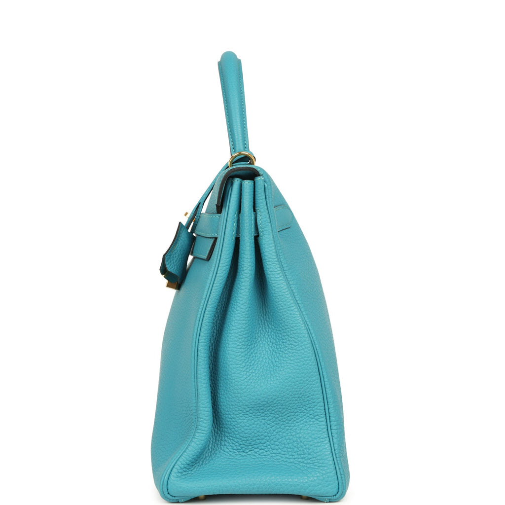 Pre-owned Hermes Kelly 35 Retourne Turquoise Togo Gold Hardware