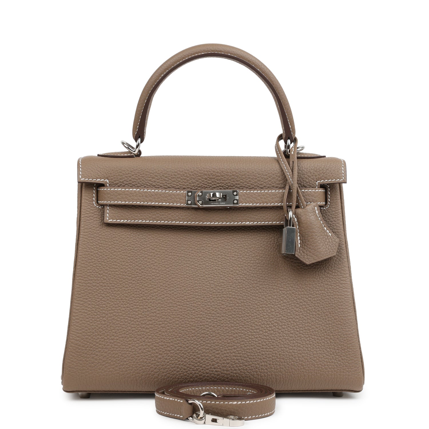 Pre-owned Hermes Kelly Retourne 25 Etoupe Togo Palladium Hardware