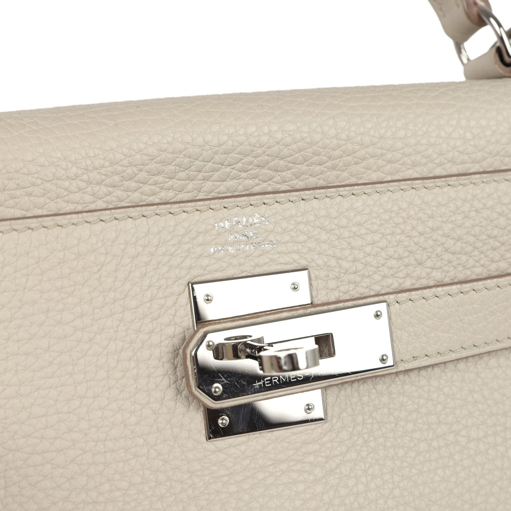 Pre-owned Hermes Kelly Retourne 28 Beton Clemence Palladium Hardware