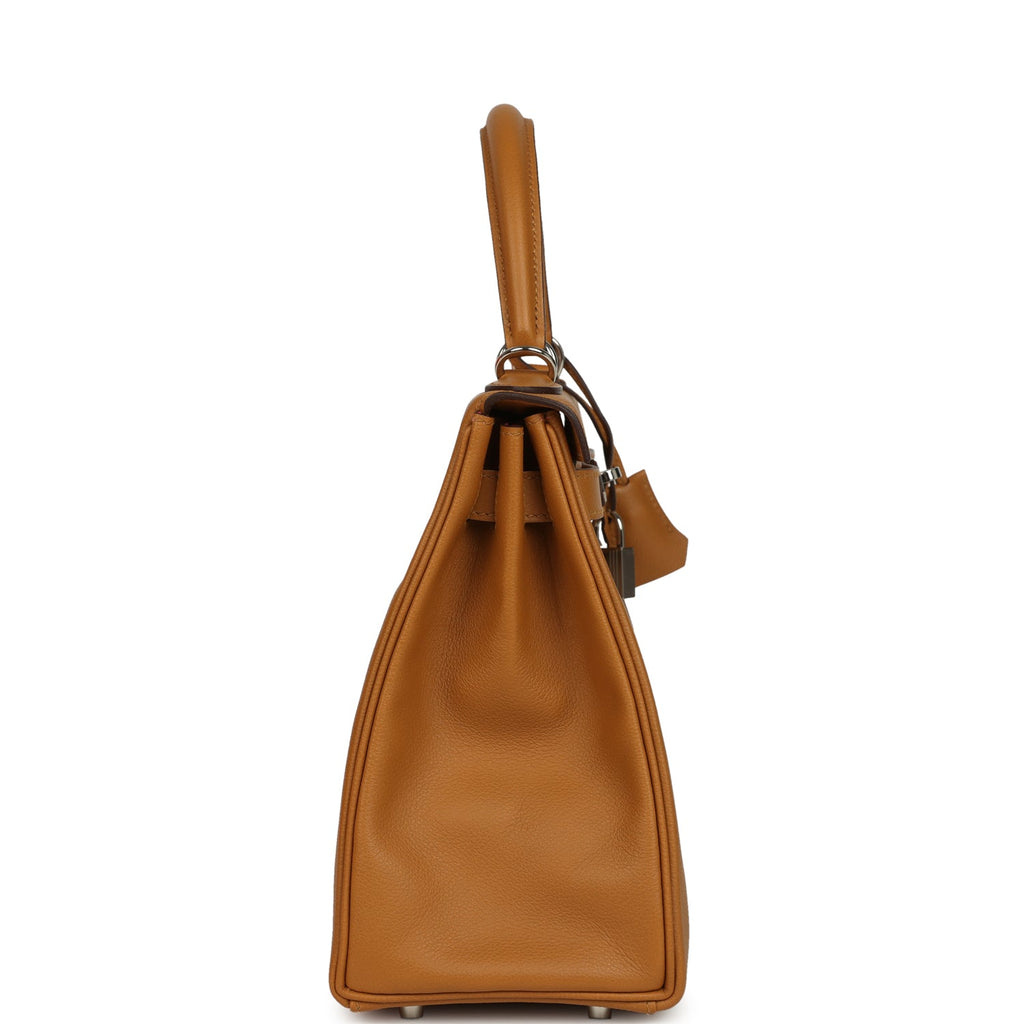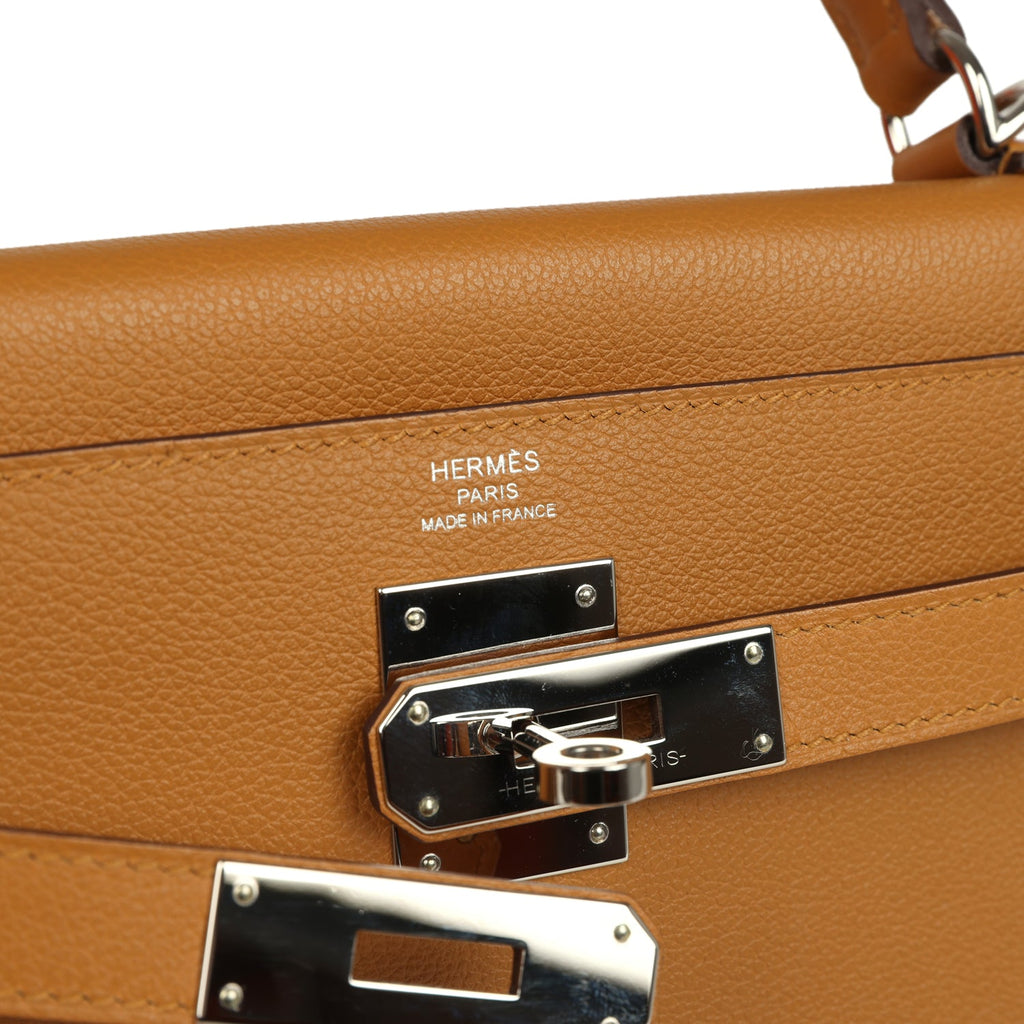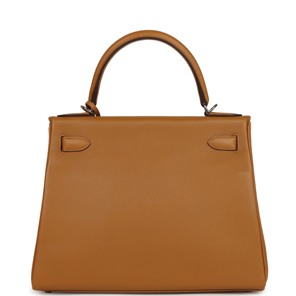 Pre-owned Hermes Kelly Retourne 28 Caramel Verso Evercolor Palladium Hardware