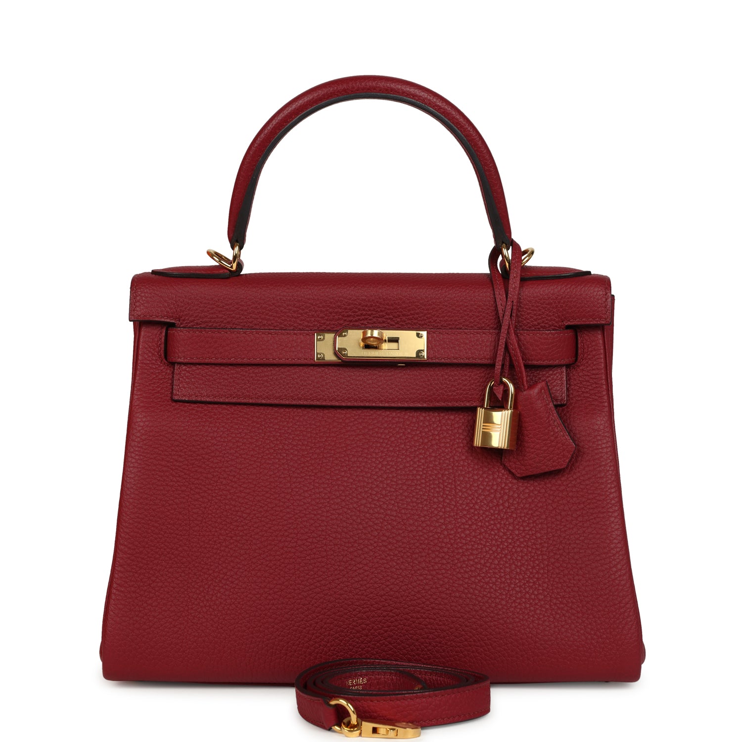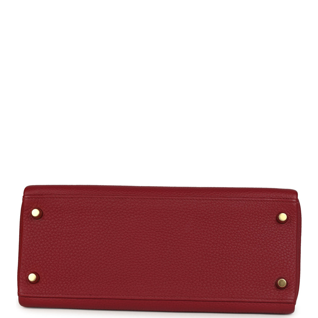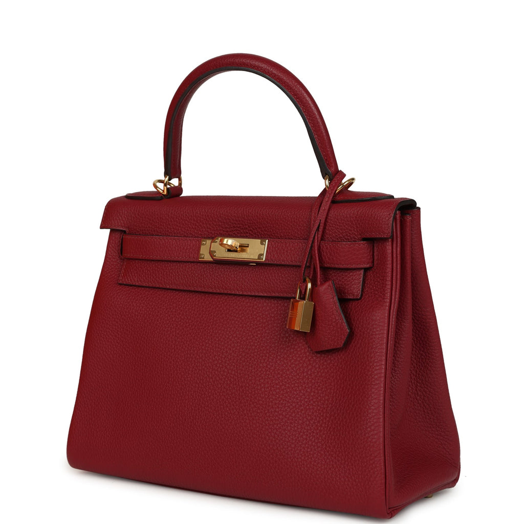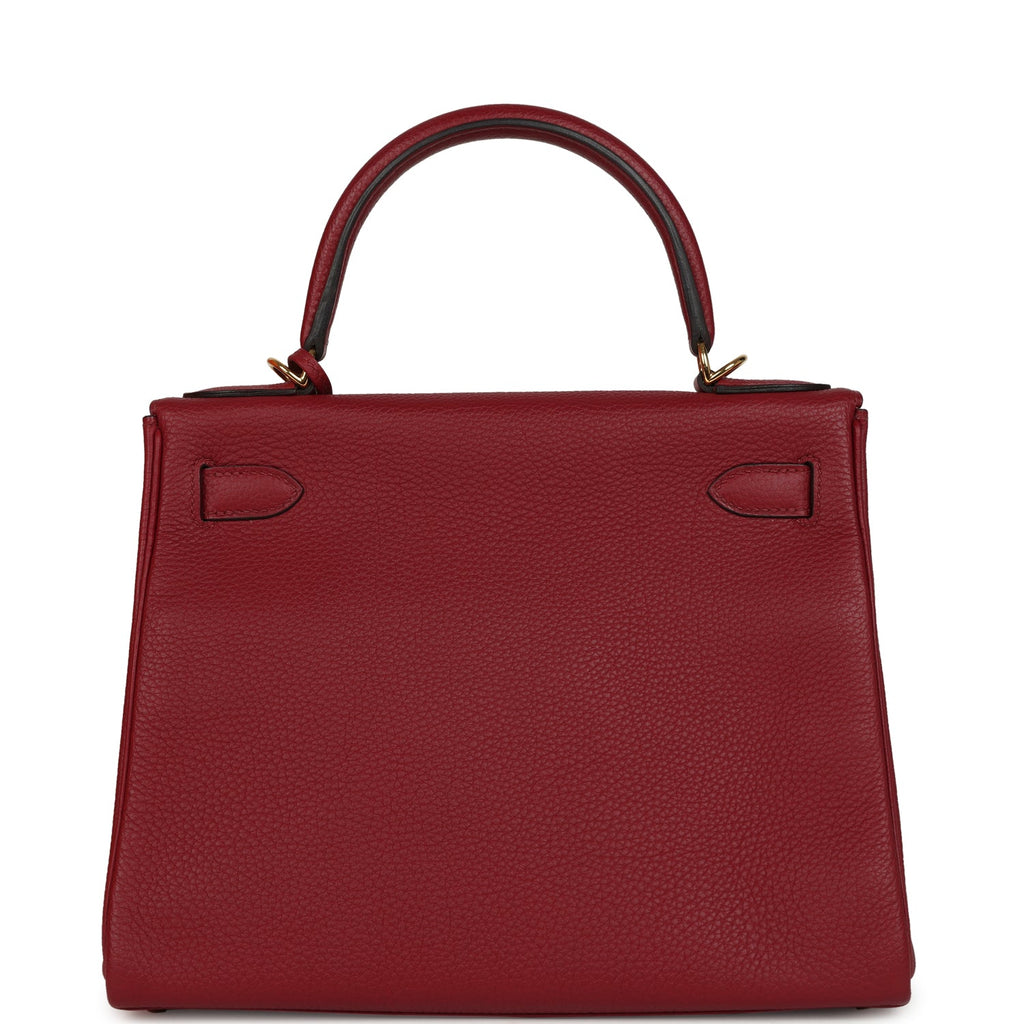 Pre-owned Hermes Kelly Retourne 28 Rouge Grenat Togo Gold Hardware