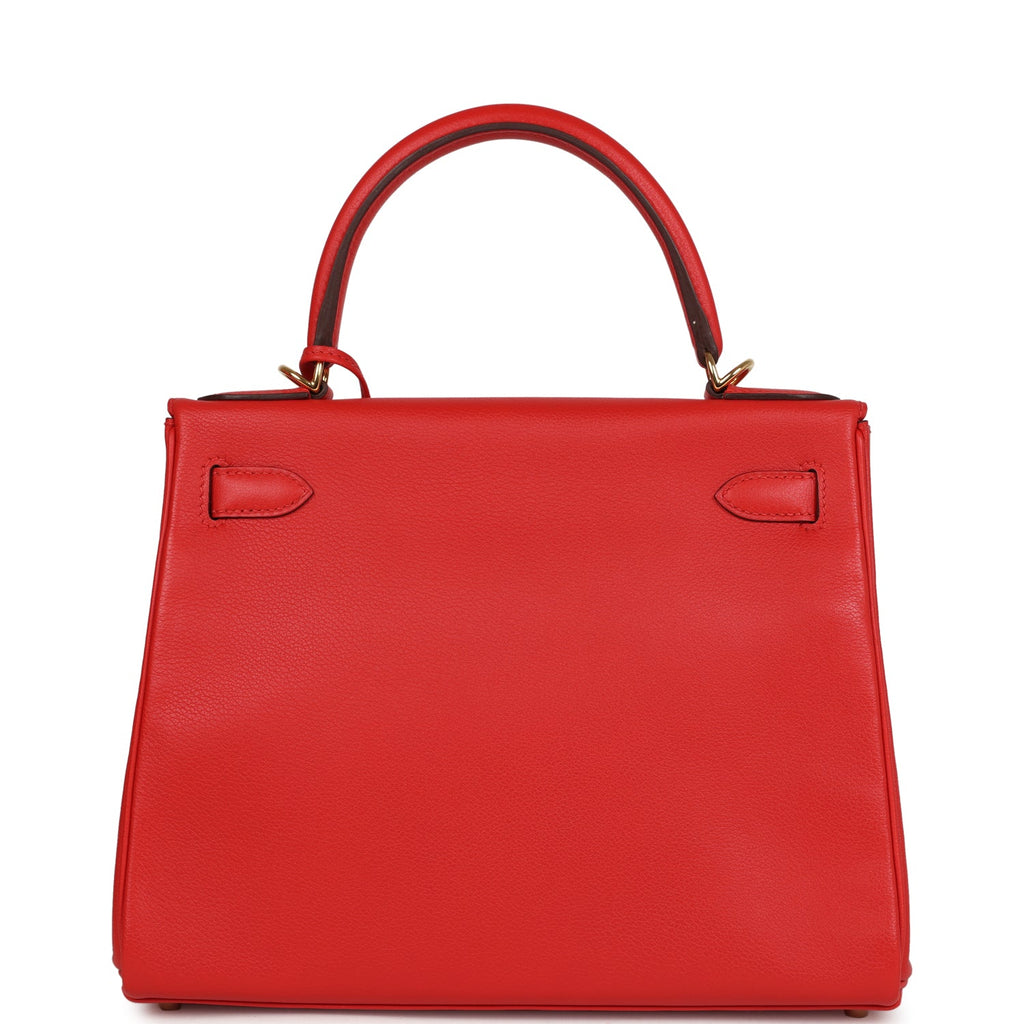 Pre-owned Hermes Kelly Retourne 28 Rouge Tomate Evercolor Gold Hardware