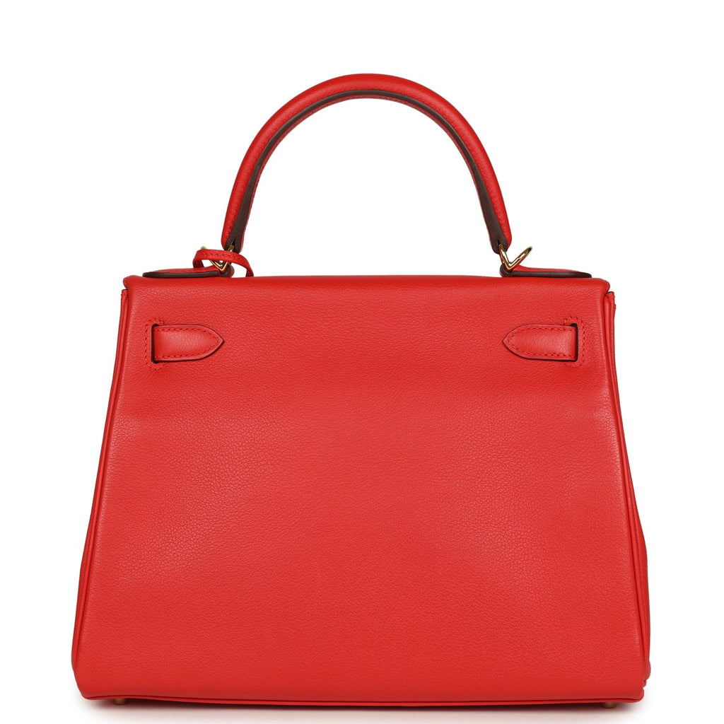 Pre-owned Hermes Kelly Retourne 28 Rouge Tomate Evercolor Gold Hardware