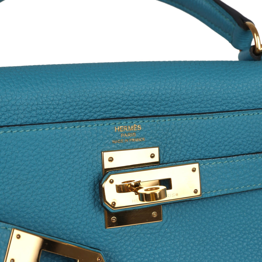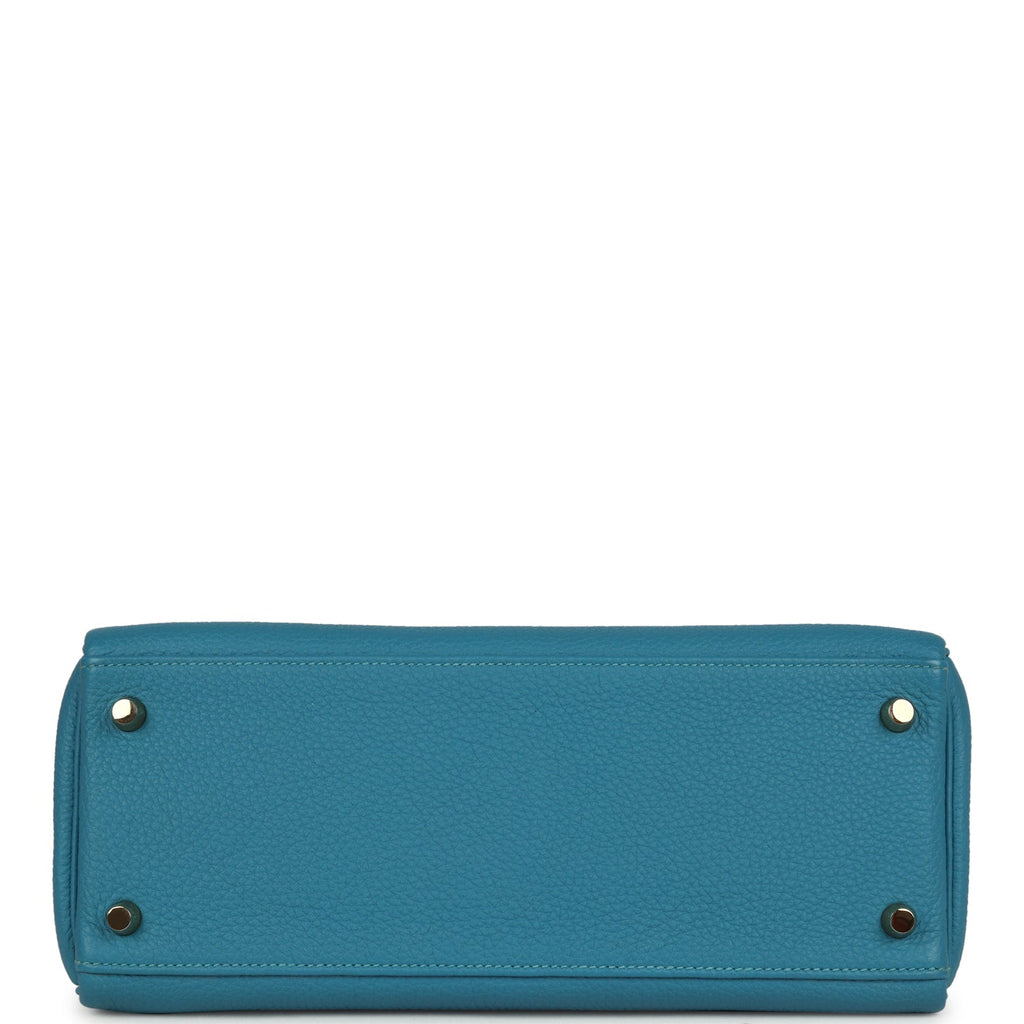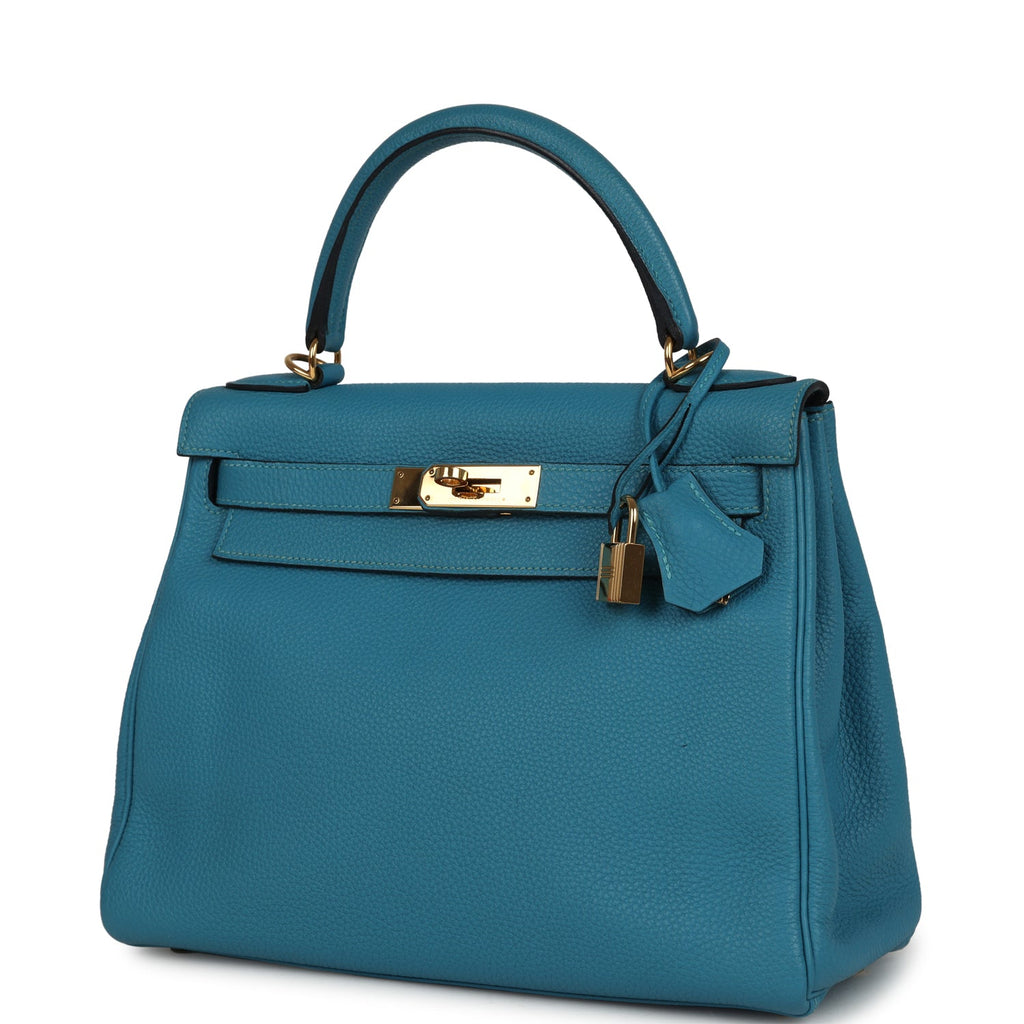 Pre-owned Hermes Kelly Retourne 28 Turquoise Togo Gold Hardware